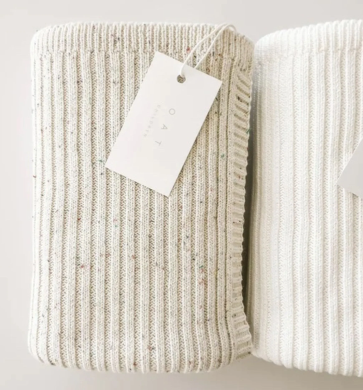- A beautiful, cozy, and classic piece, the Sprinkle Knit Ribbed Blanket from Oat Children is a one-of-a-kind gift. It comes in a neutral tone and features flecks of rainbow stitches throughout, adding just the right amount of color. Parents will be excited to add this high-quality piece to the baby’s nursery. Prefer a solid color that will match everything? We have that as well! The Powder Ribbed Knit Blanket is perfect for the refined parent. Super soft, both Oat Children blankets will surely br cherished by parents and baby alike.