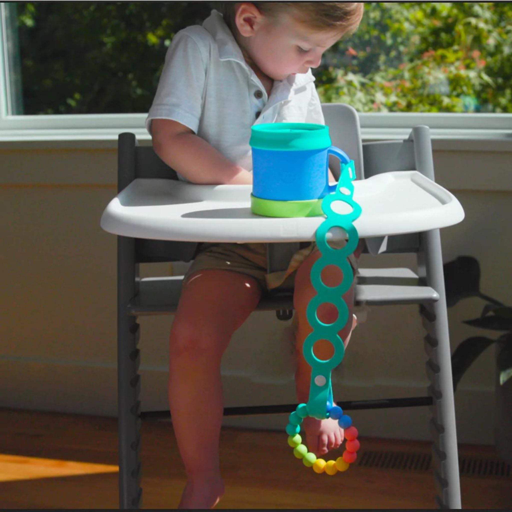 This extra-stretchy silicone teether by Morepas comes in a blueberry hue and easily attaches to the Morepeas Snack Cup. It can also be added to strollers, carriers, and much more!