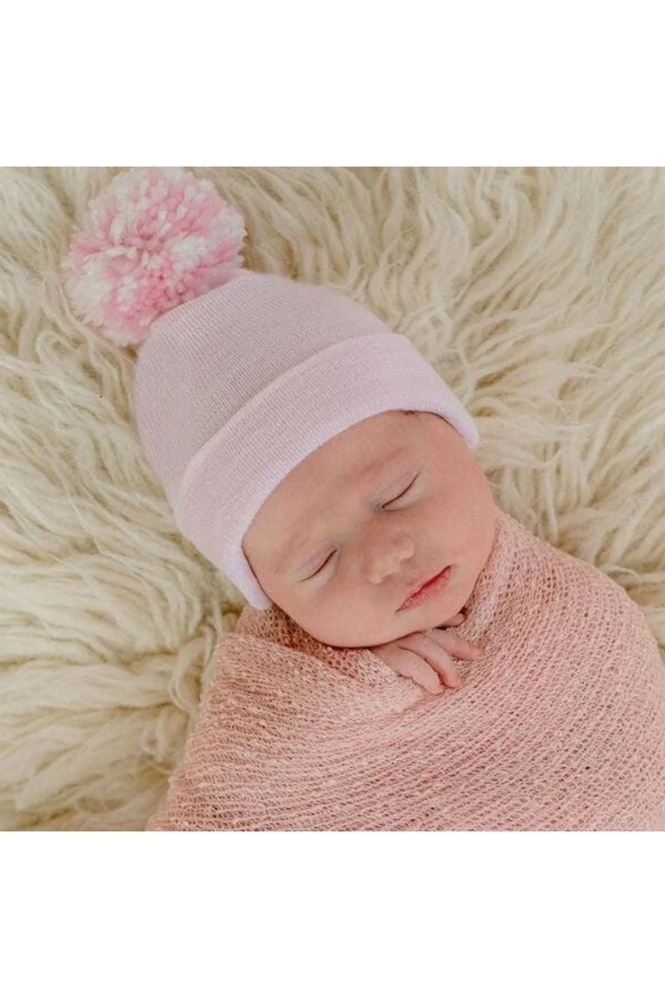 Keep baby girl warm and cozy all throughout winter with this adorable beanie from Ilybean! It comes in a light pink hue and features a multicolored pom at the top.