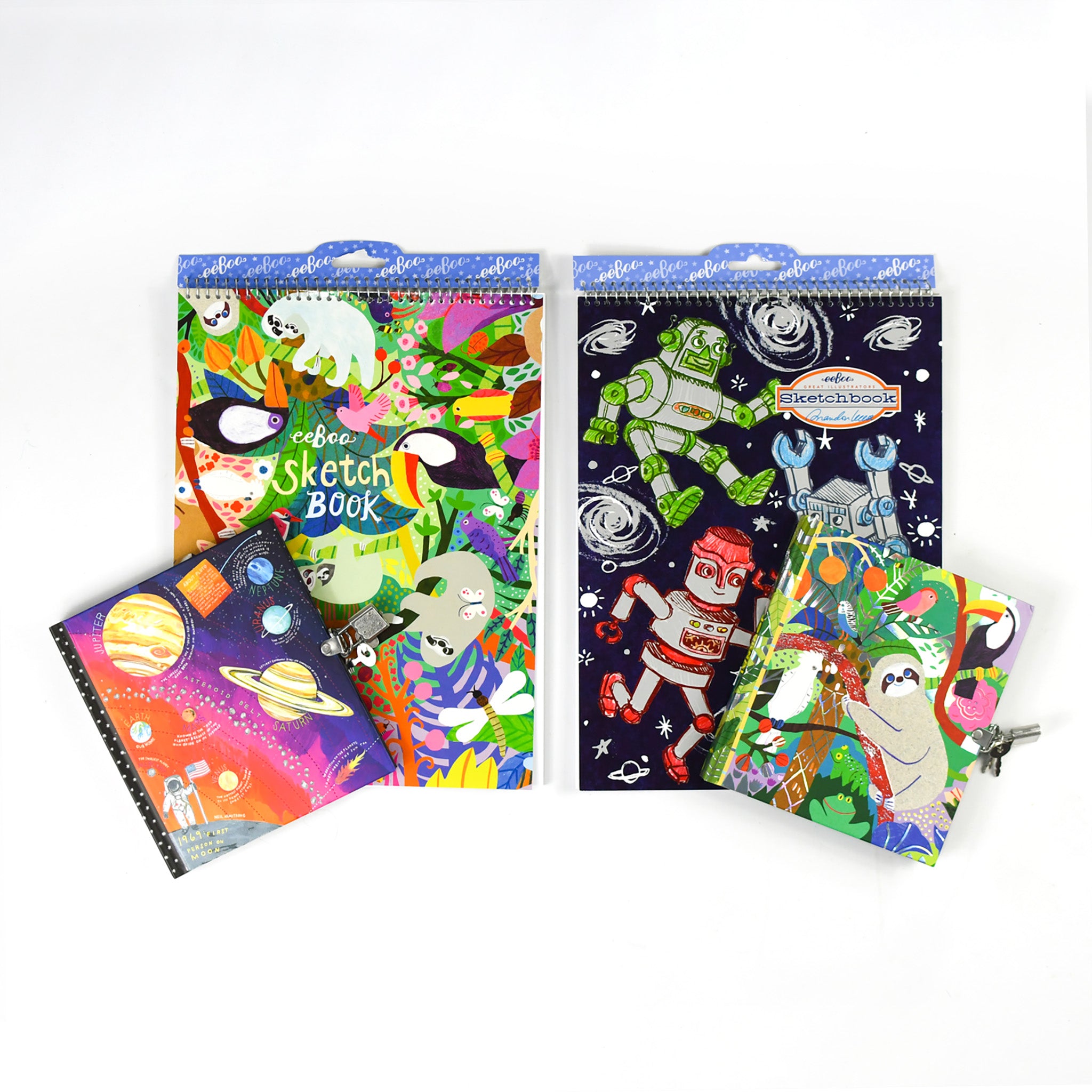 This robot-themed sketch book by Eeboo is perfect for your creative little one! It features an illustration from Brandon Reese and includes 60 matte pages.