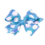 This statement-making, jumbo-sized Wee Ones bow is the perfect accessory for your little girl! It features allover iridescent sequins and large, white polka dots.