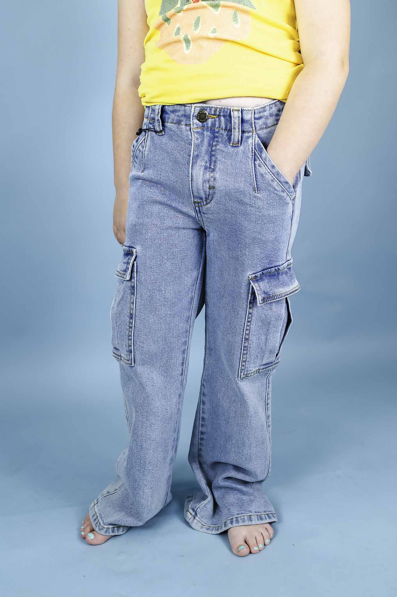 These cargo denim pants from Molo come in a light wash and feature pockets throughout. Pair them back to a graphic tee and slip-on sneakers for a casual outfit.