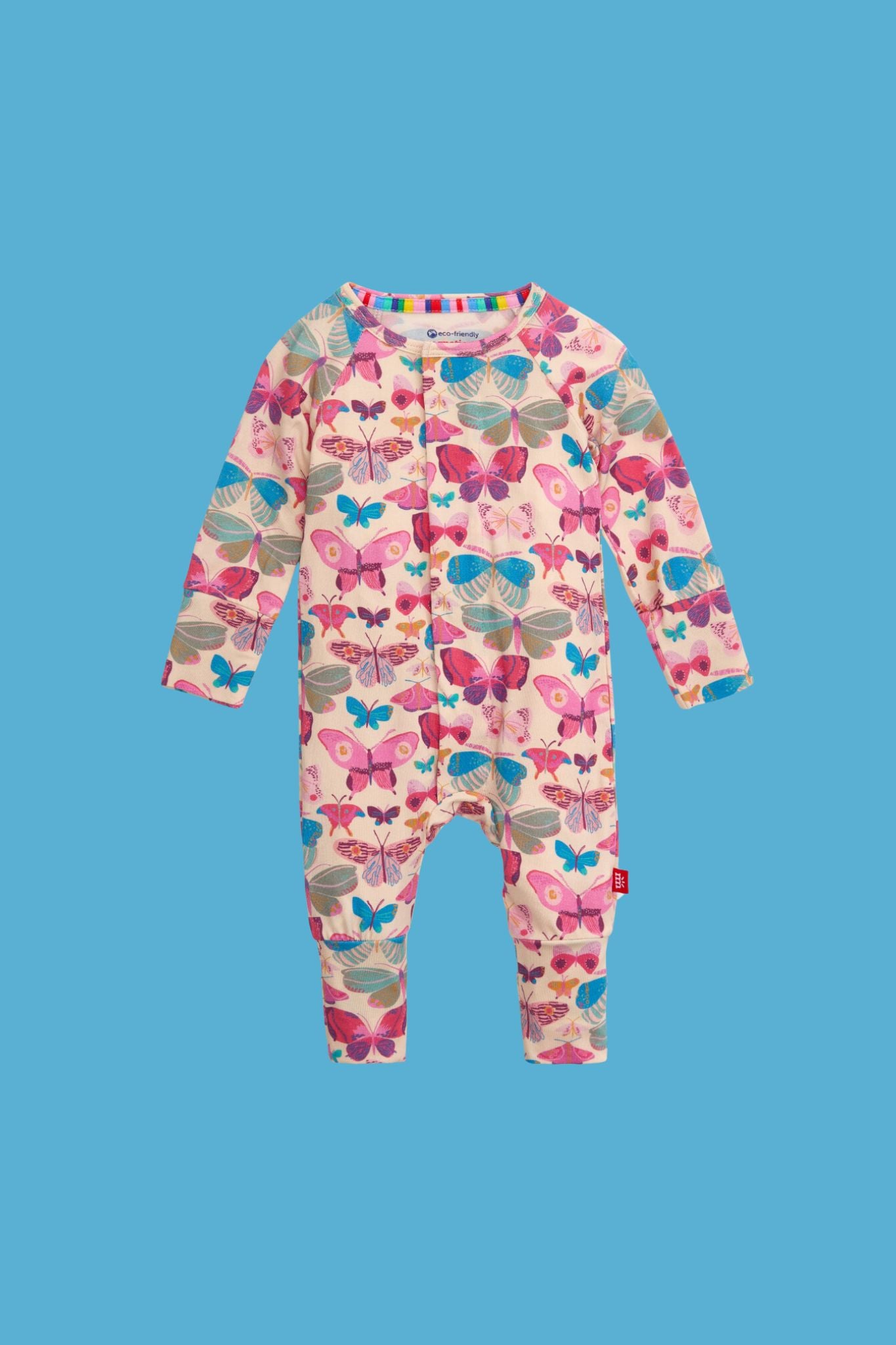 This beautiful Magnetic Me coverall piece features an allover butterfly print, long sleeves, and magnetic fasting along the front body. Baby girl is sure to stay cozy!