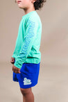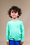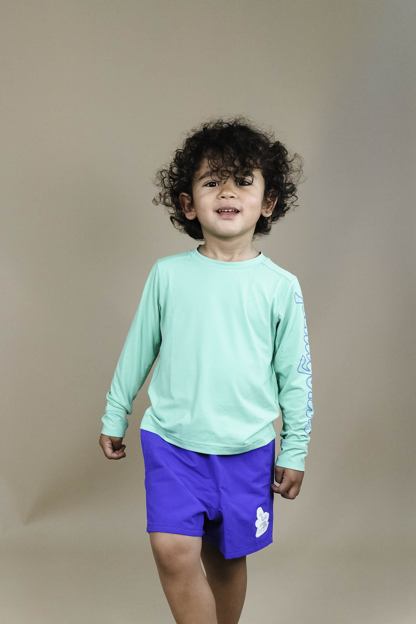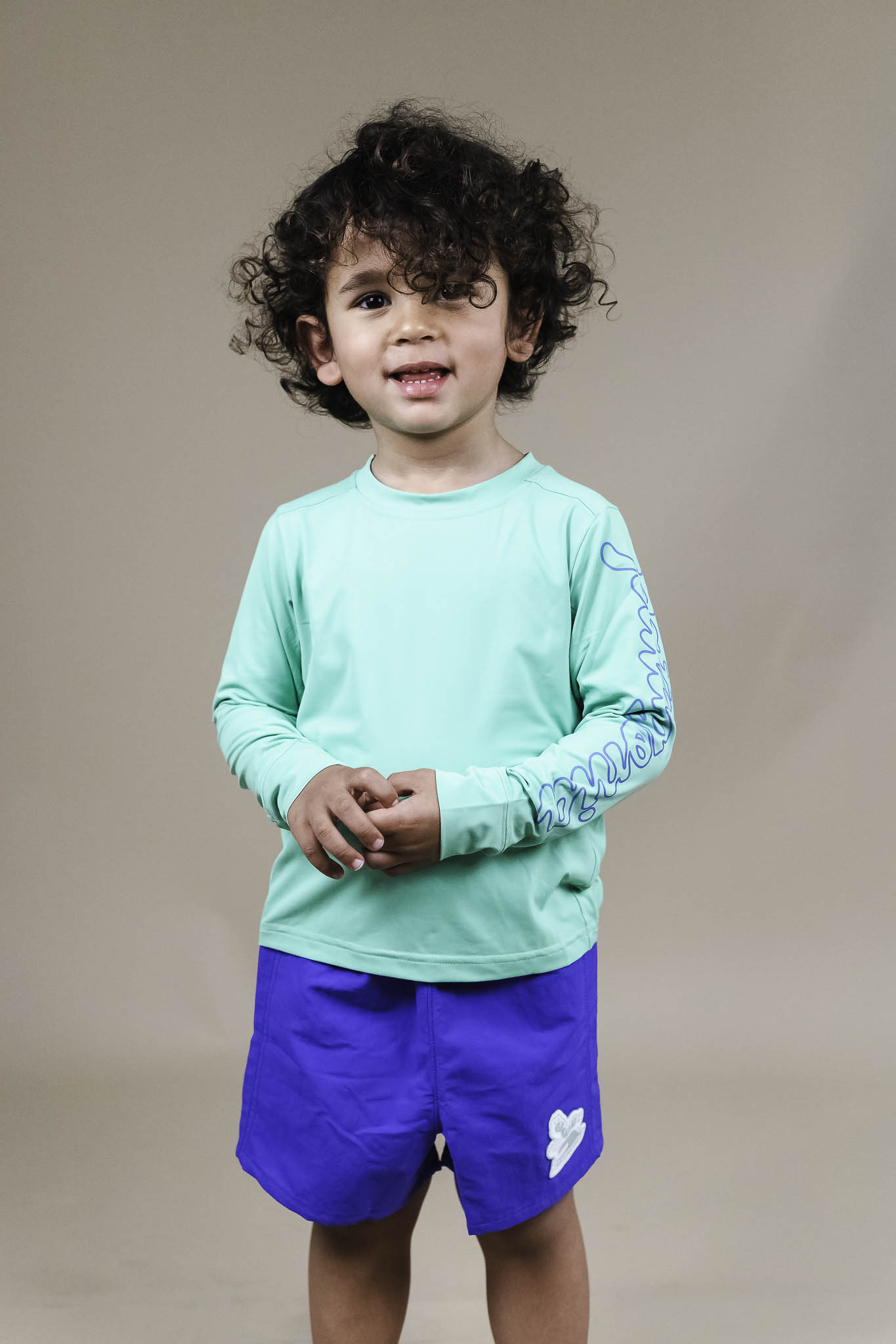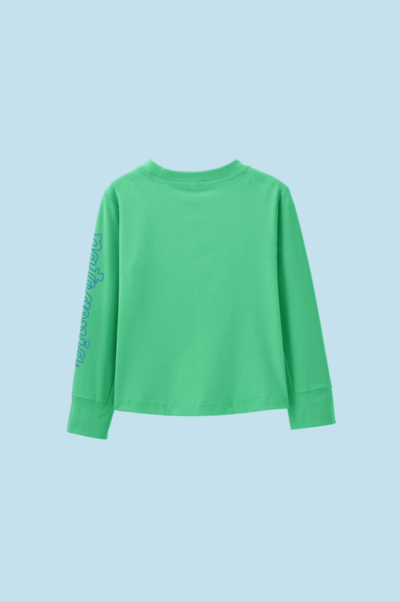 This vibrant green t-shirt by Patagonia is perfect for your little one! It features long sleeves, the brand name printed on one sleeve, and a breathable fabric. Add a pair of shorts and sneakers for an easy outfit.