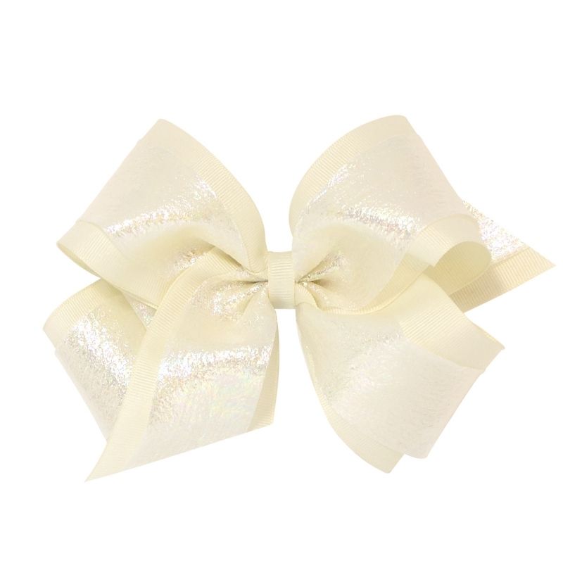 This cream-colored bow by Wee Ones pairs perfectly with your little girl's favorite dress! It features an iridescent, pastel sheen and comes in two different sizes.