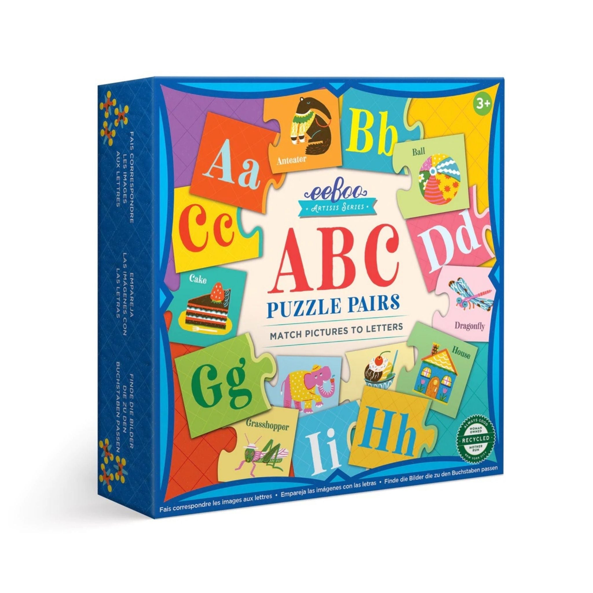 Learn the alphabet with these Puzzle Pairs from Eeboo! Beautifully illustrated by Japanese artist Asahi Nagata, these alphabet tiles feature letters on one side and prints on the other.