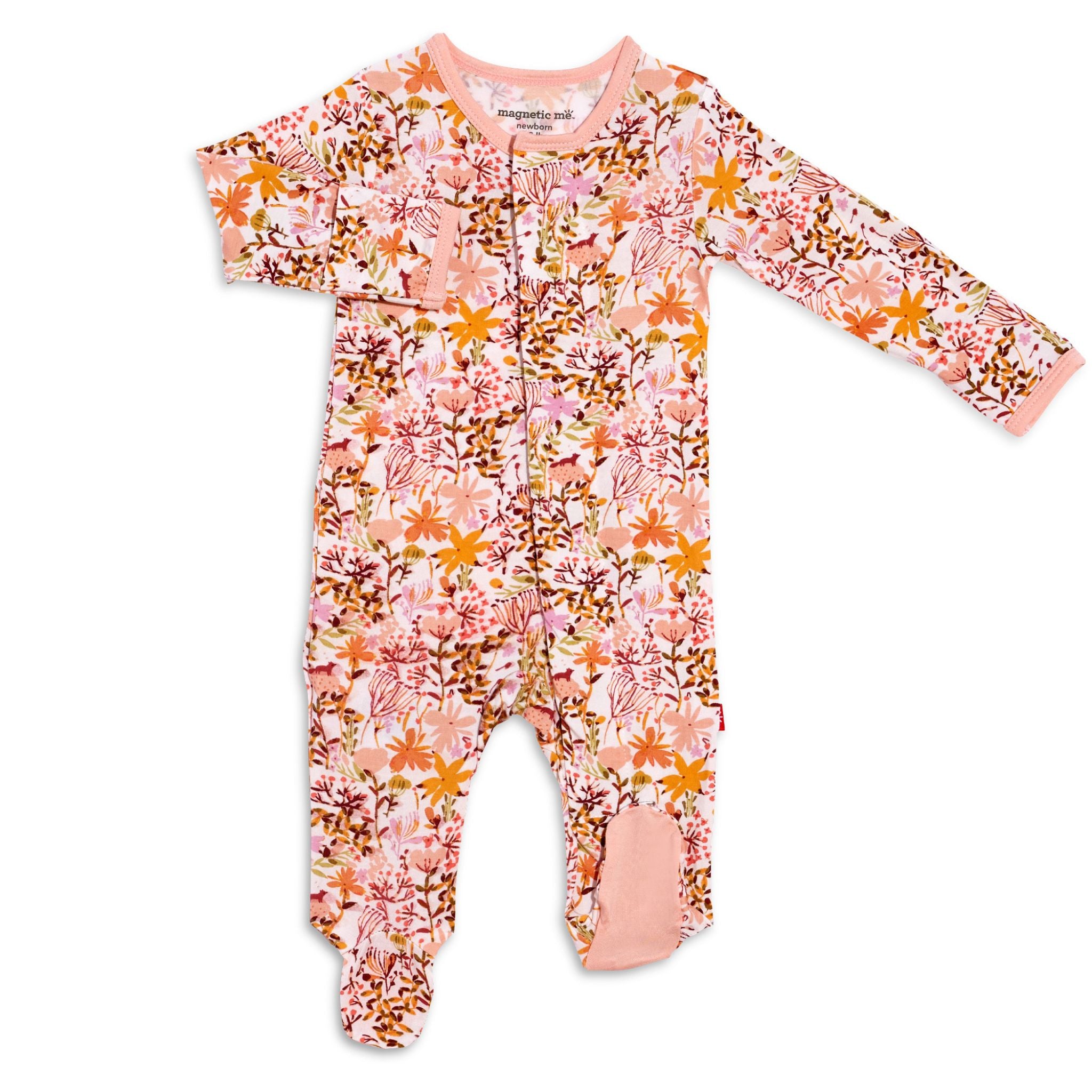 This beautiful, autumnal piece from Magnetic Me features an allover floral print and long sleeves. Magnetic closure at the front allows you to get baby girl in and out with ease.