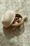 Help the Baby Turtle make its way to the shore! This charming basket is handcrafted with braided cords made from eco-friendly recycled PET-bottle yarn. The Baby Turtle features a sweet olive-green organic cotton head and feet, adding a touch of whimsy. Lift the lid to tuck away your small treasures in this adorable, sustainable storage solution!