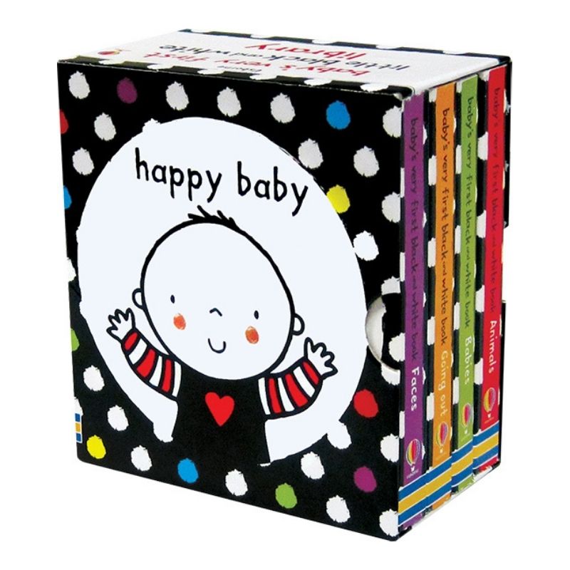 Gift a little one this wonderful set of four Baby's First Black and White Books from Usborne. They include themes of faces, going out, babies, and animals.