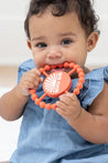 The Happy Teether is a silicone teething toy designed to soothe sore gums and provide sensory stimulation. Its beaded texture offers an ideal grip and resistance for relieving teething pain.