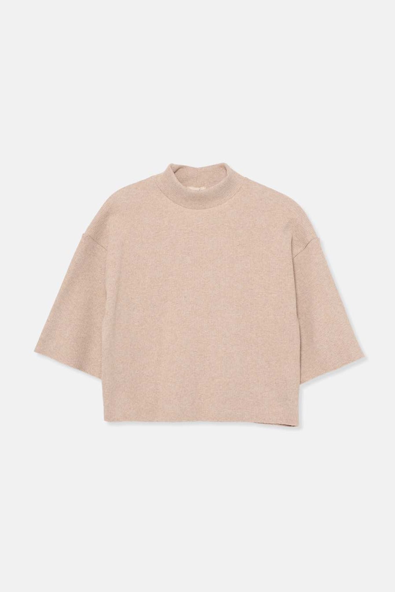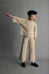 This classy mock neck sweater from My Little Cozmo takes your girl's wardrobe up a notch! It comes in a beige hue and features wide, three-quarter sleeves. Pair it back to the Beige Rib Flared Bottoms for a cozy outfit.