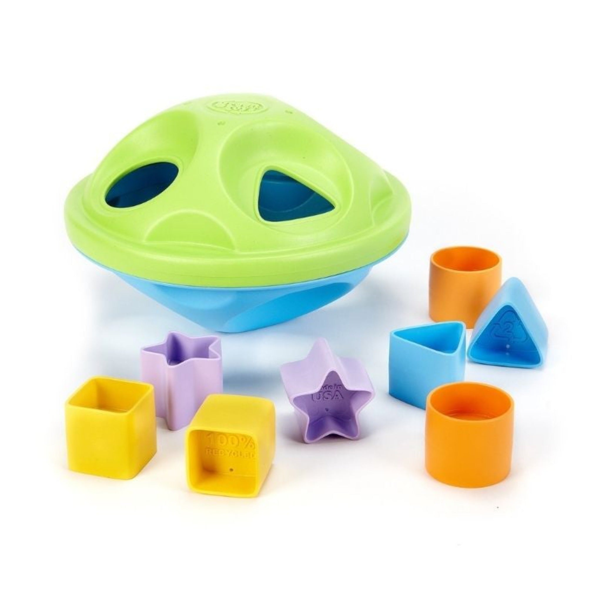 This BPA-free shape sorter by Green Toys is both practical and fun! Made of eco-friendly materials, it includes various multicolored shapes for your child to play with.