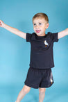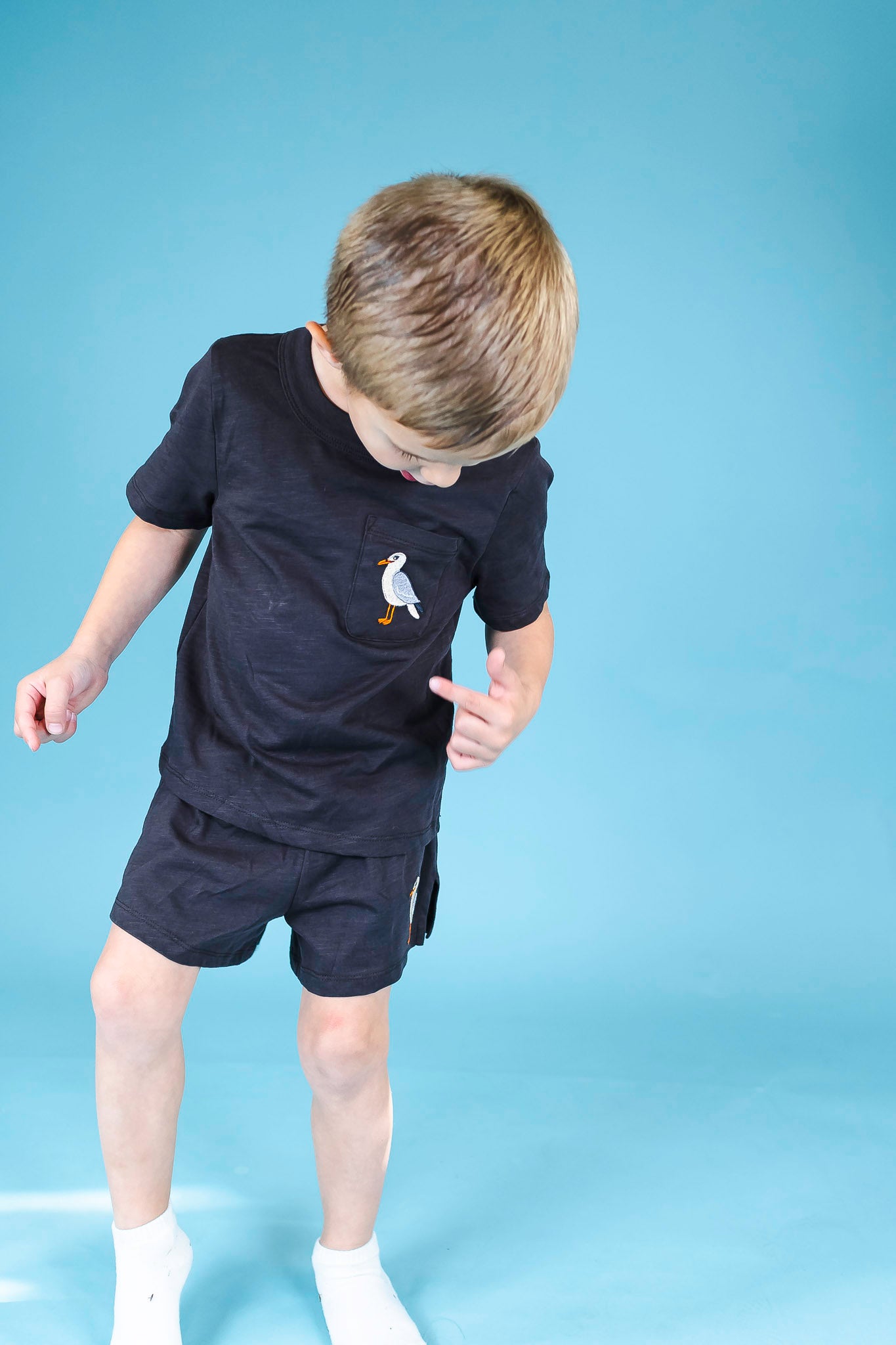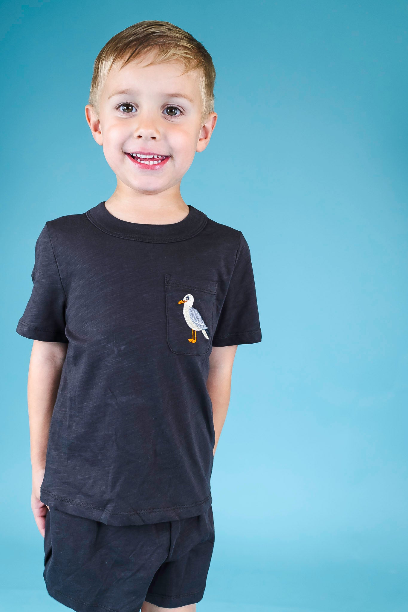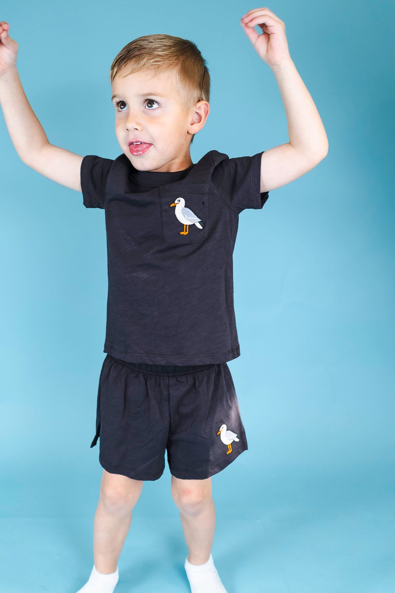 This organic tee from Mini Rodini comes in black and features a sweet seagull on the chest pocket. The organic fabric makes it a comfy piece.