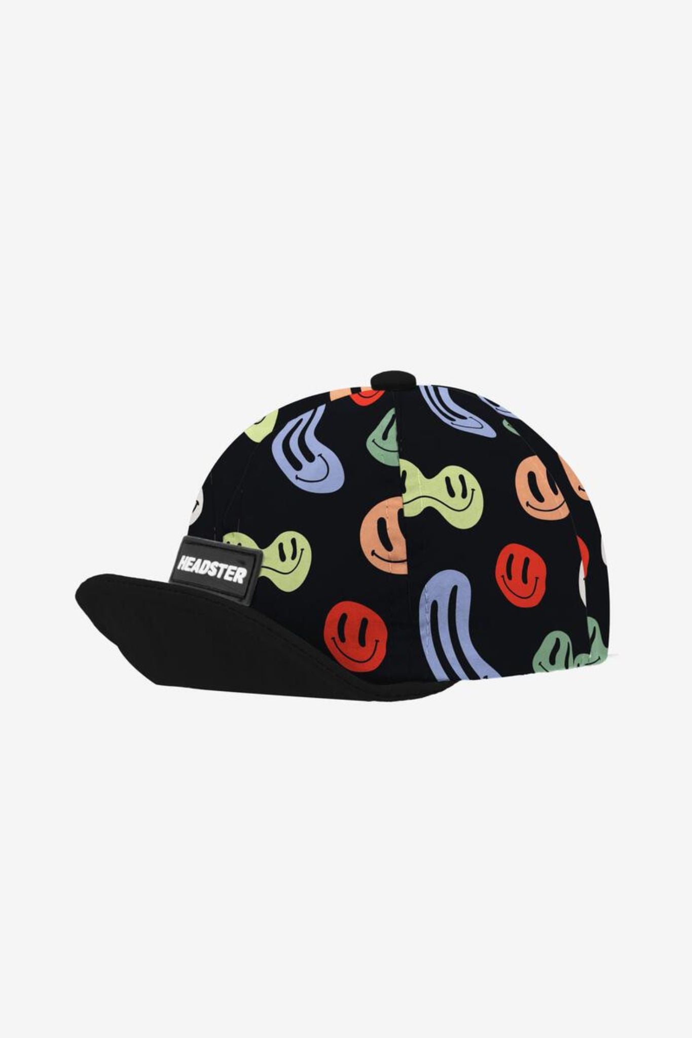 This Headster cap features an ultra-cool, wavy smiley print and a short brim. A brand logo adorns the center front.