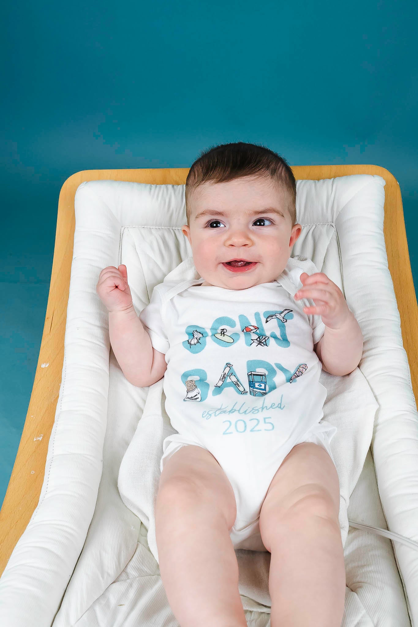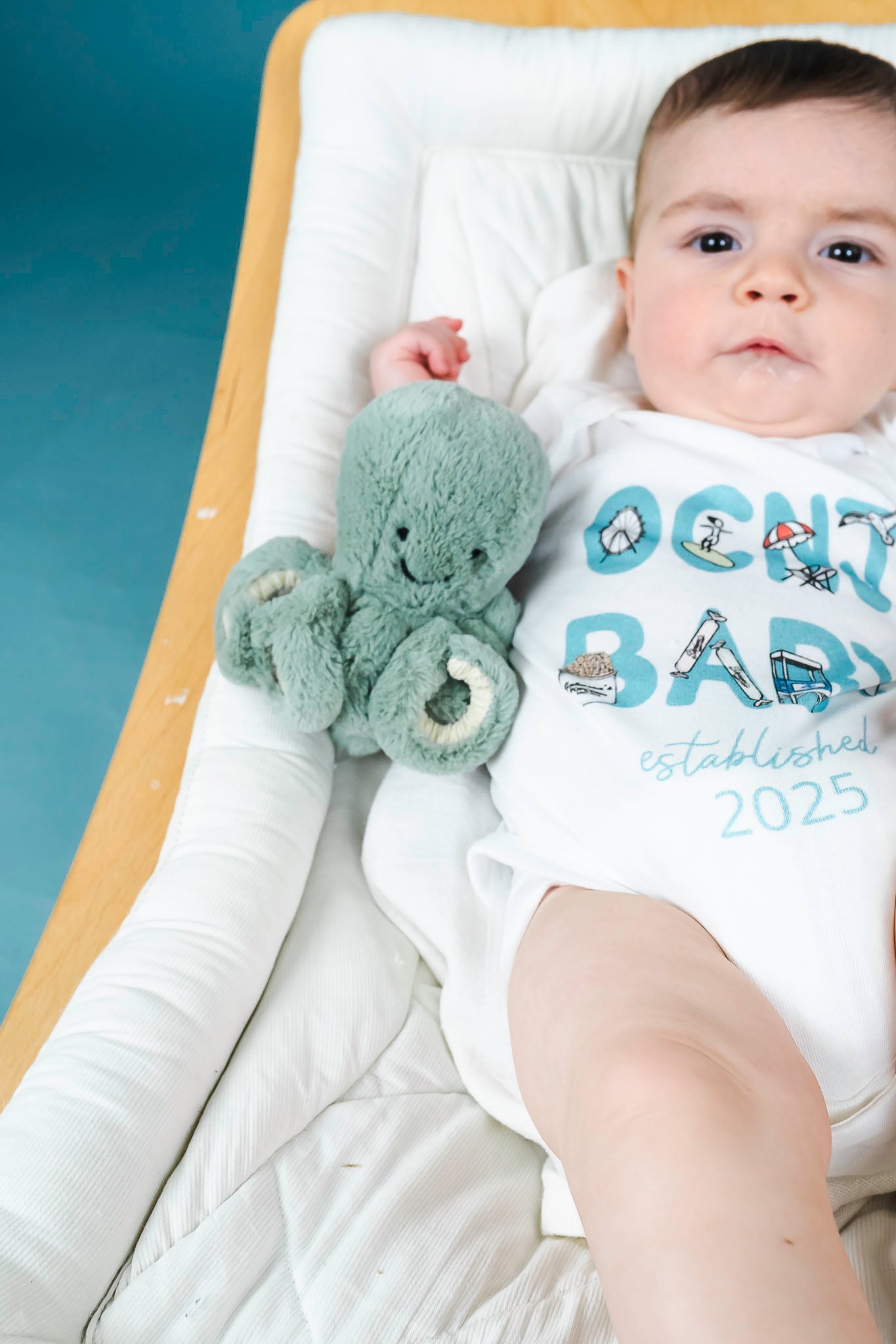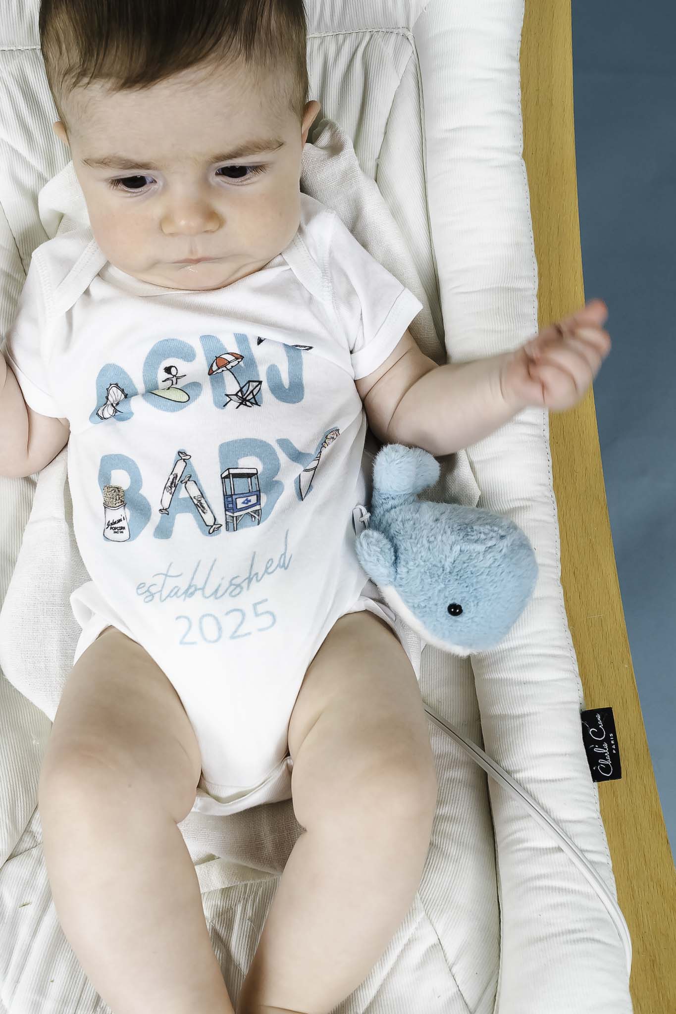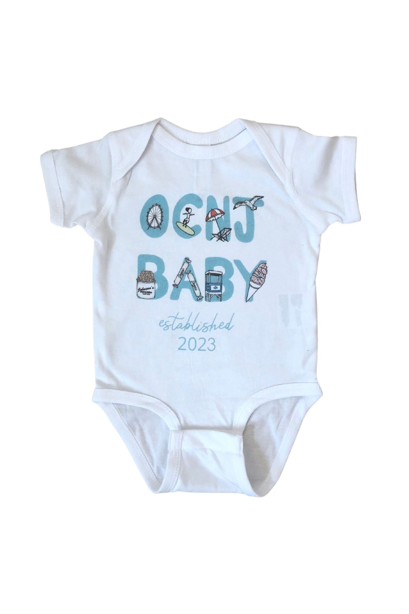 Outfit your little one to represent the best beach town! This cozy onesie features the words "OCNJ Baby" across the front, as well as sweet, signature graphics throughout the letters.