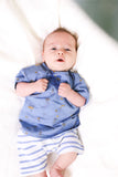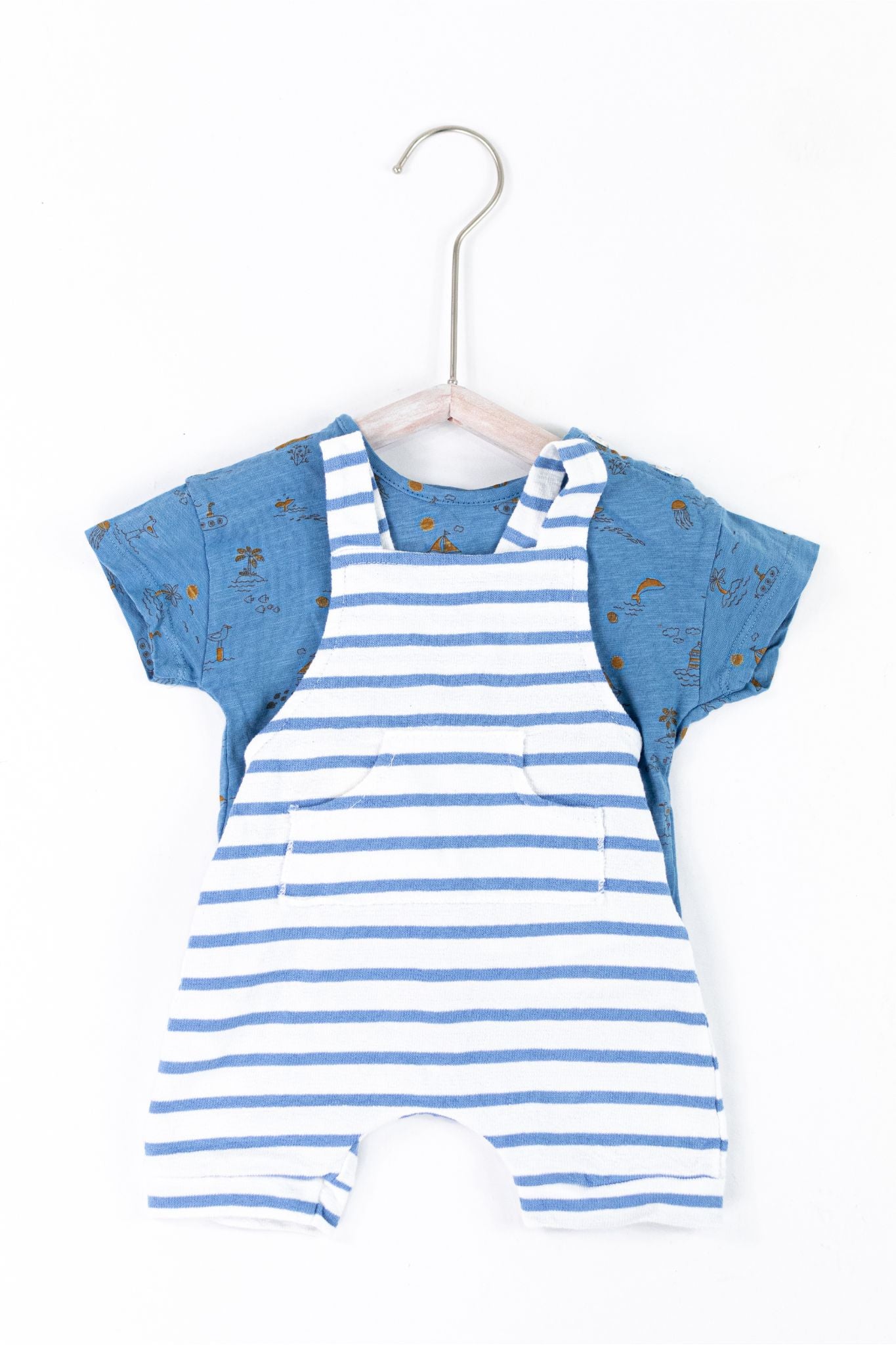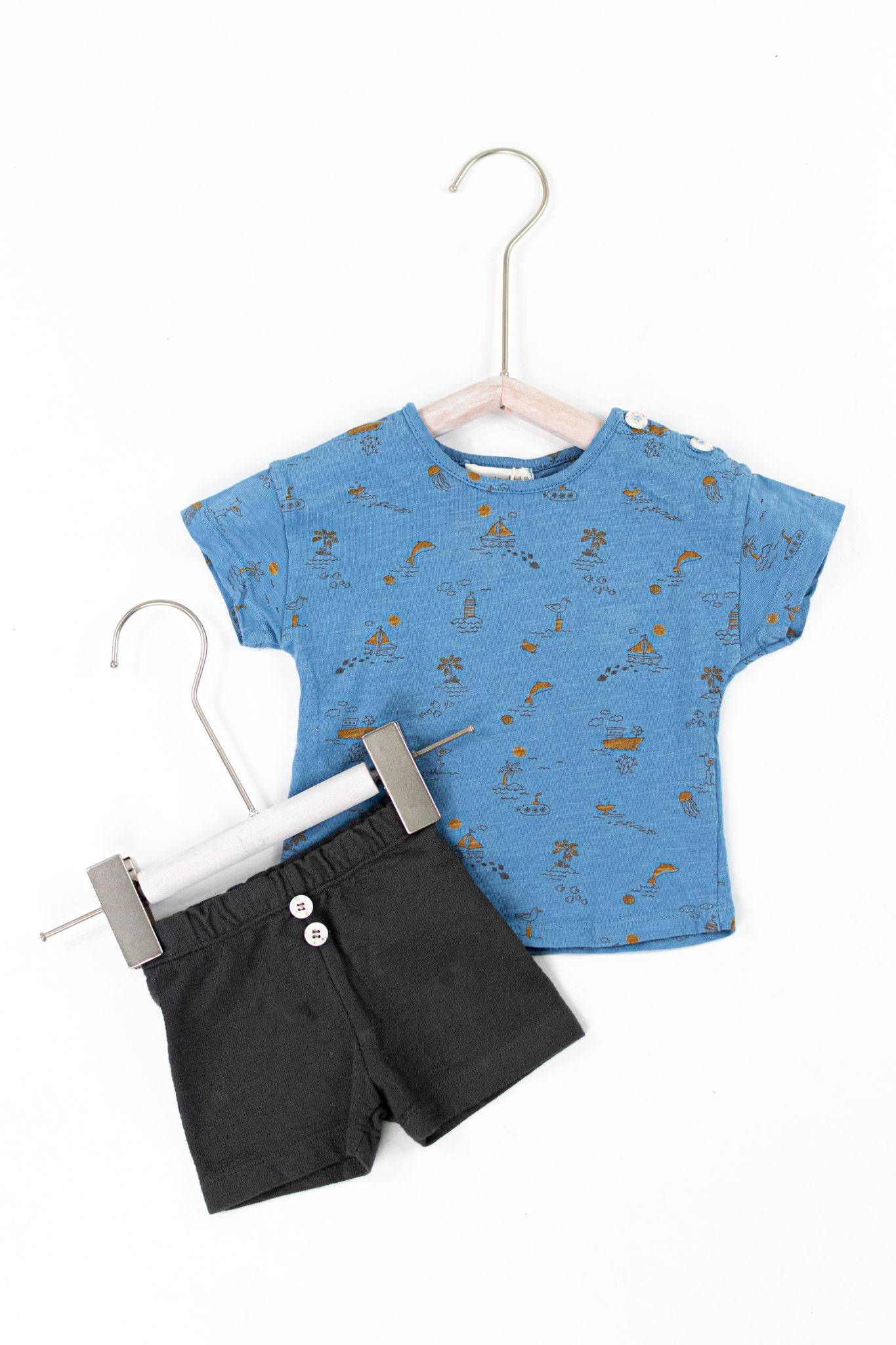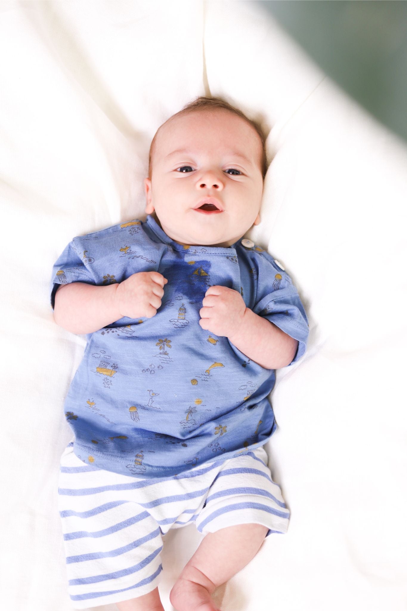 This precious t-shirt from Beans comes in blue and features an allover boat print. Buttons at the side neck allow baby to get in and out with ease.