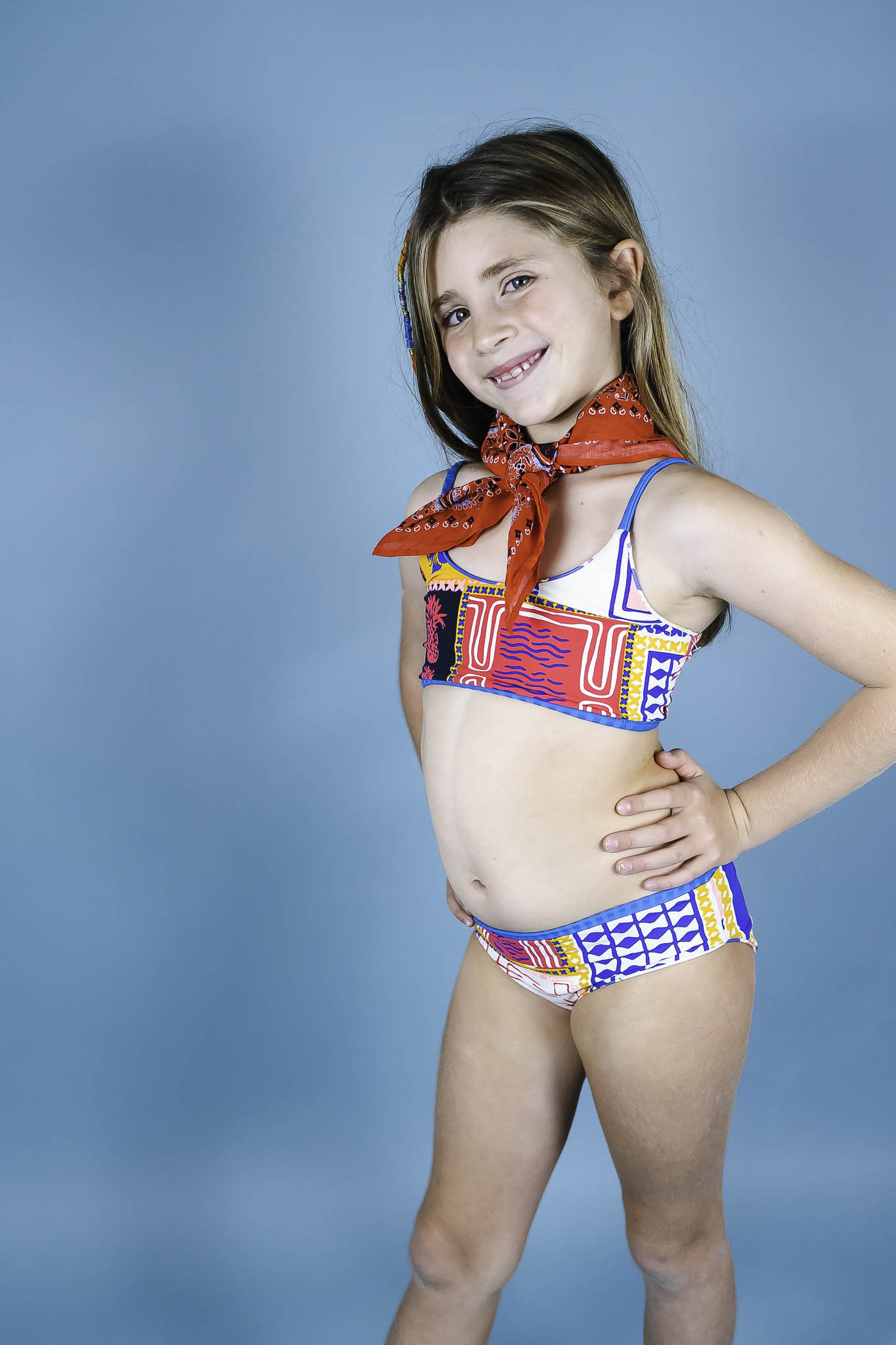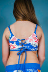 This beautiful two-piece swimsuit from Maaji is reversible! It includes a tie-back top and hipster bottoms. One side is a vibrant floral print, while the other a unique mixed print.