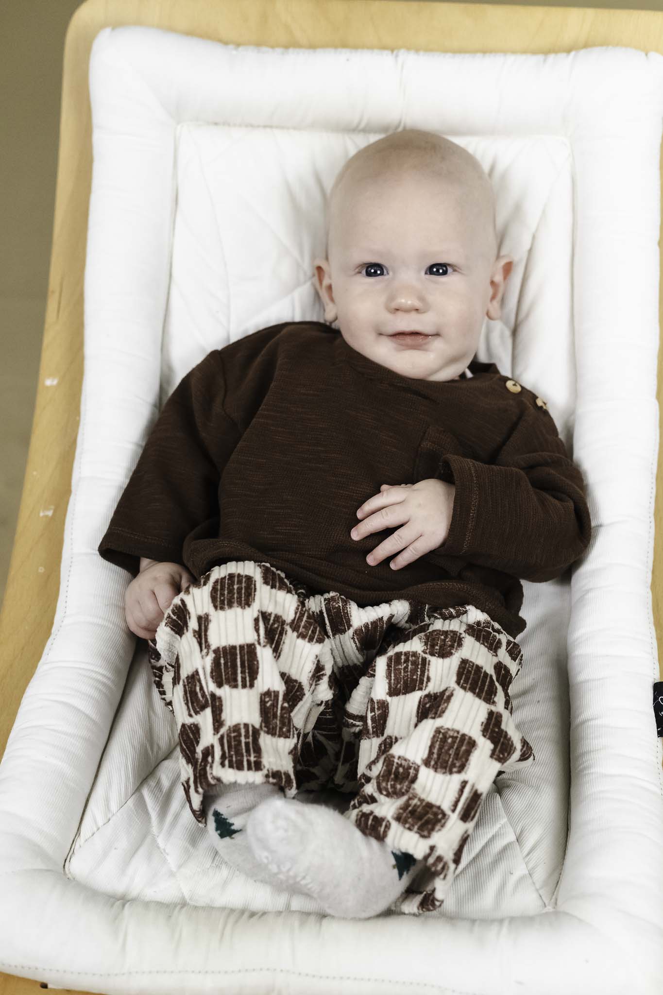 Easy and classic, this baby boy t-shirt by Play Up is a comfy essential for every day. The soft brown organic cotton jersey feels gentle on his skin, while the wooden buttons at the shoulder add a cool, natural touch.