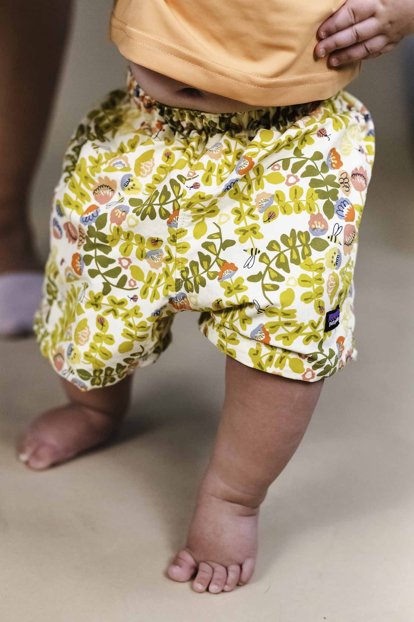 These woven, floral shorts from Patagonia are perfect for baby girl's adventures! They feature an elastic waistband and brand label at the thigh.