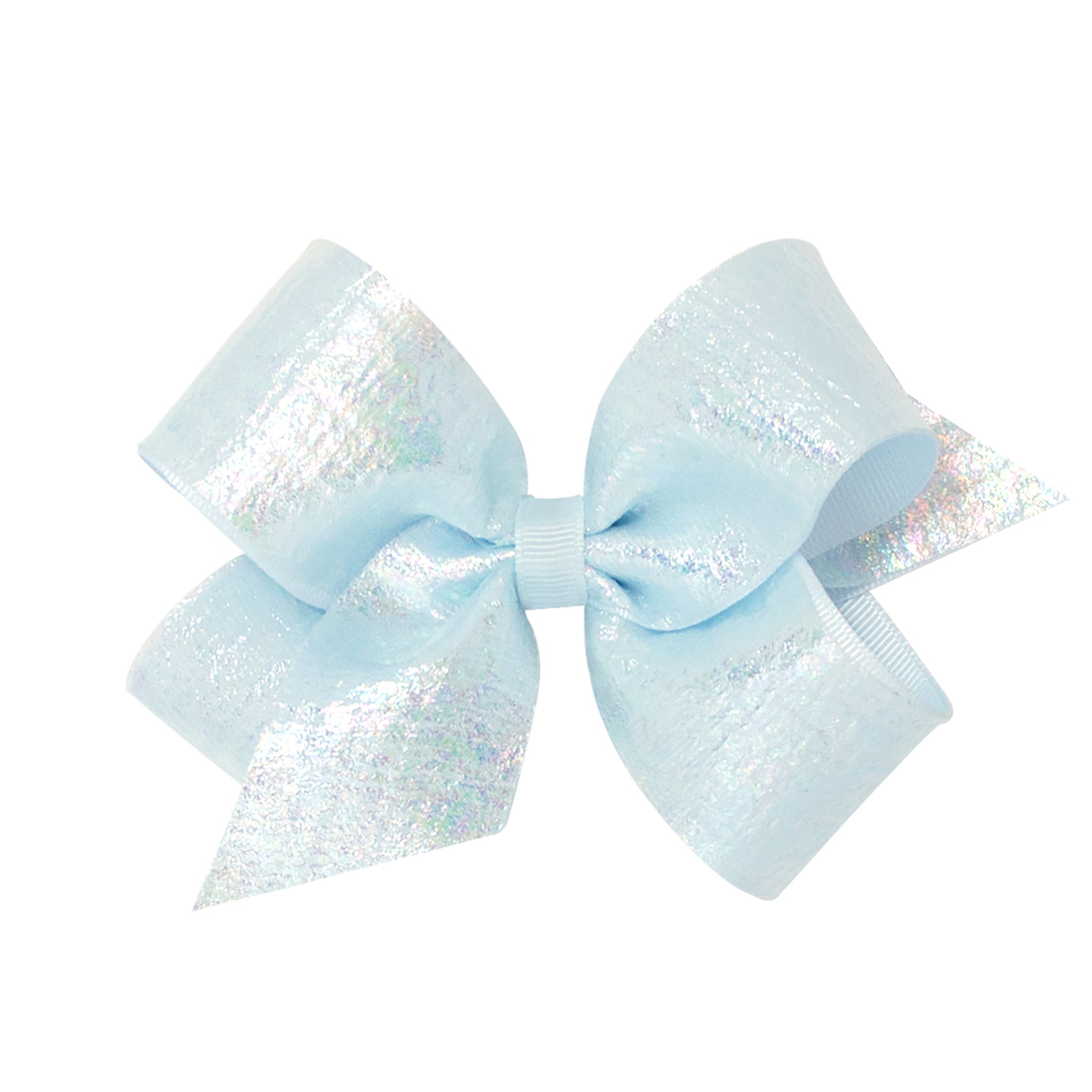 Add this adorable Wee Ones bow to any of your little girl's outfits! It comes in a light blue color and features an iridescent, pastel sheen.