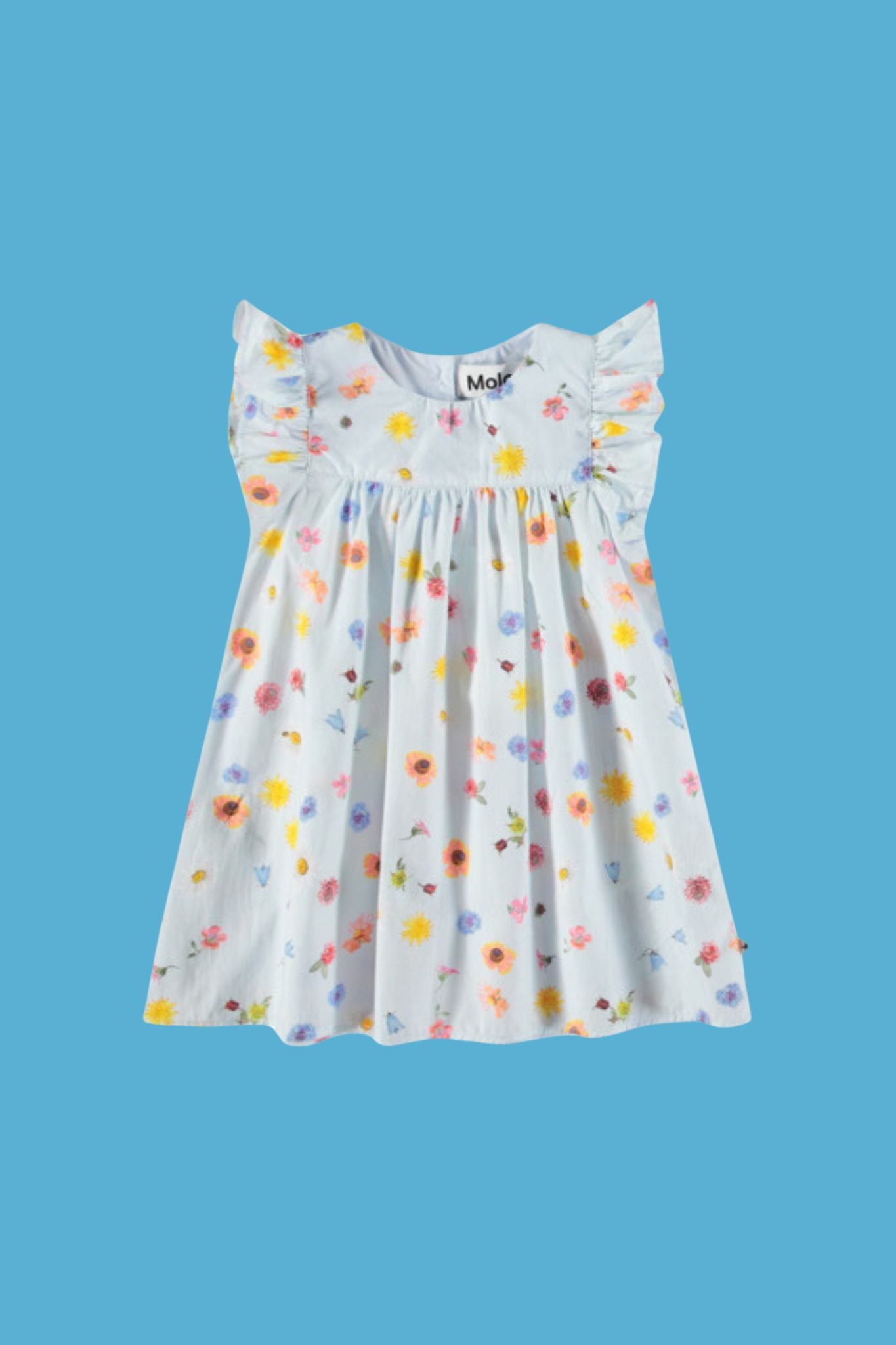 Outfit your little one in this beautiful dress from Molo! It features small flowers printed throughout and ruffles along the shoulders. Add a pair of sandals for a sweet summertime outfit.