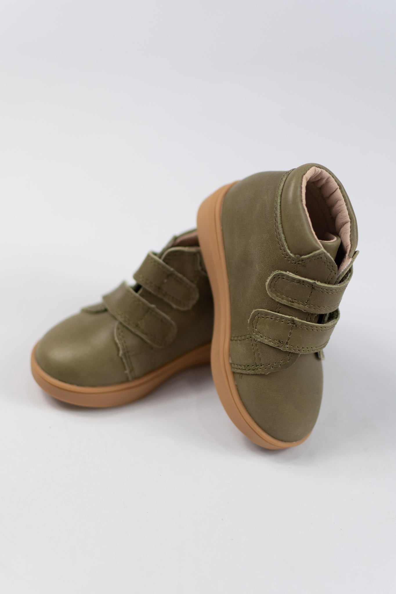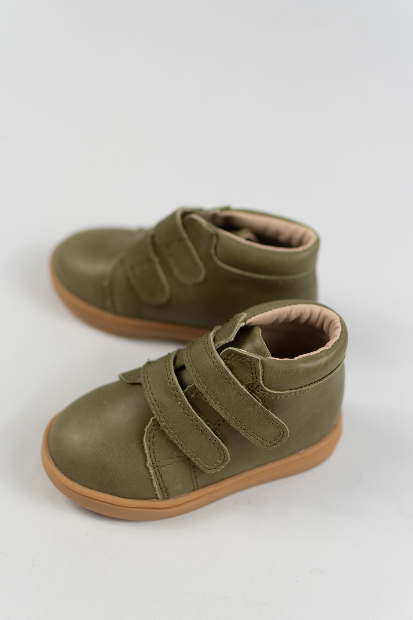These handmade, high-top sneakers by Consciously Baby are perfect for your on-the-go little one. They come in a cactus hue and feature Velcro straps for simple closure.