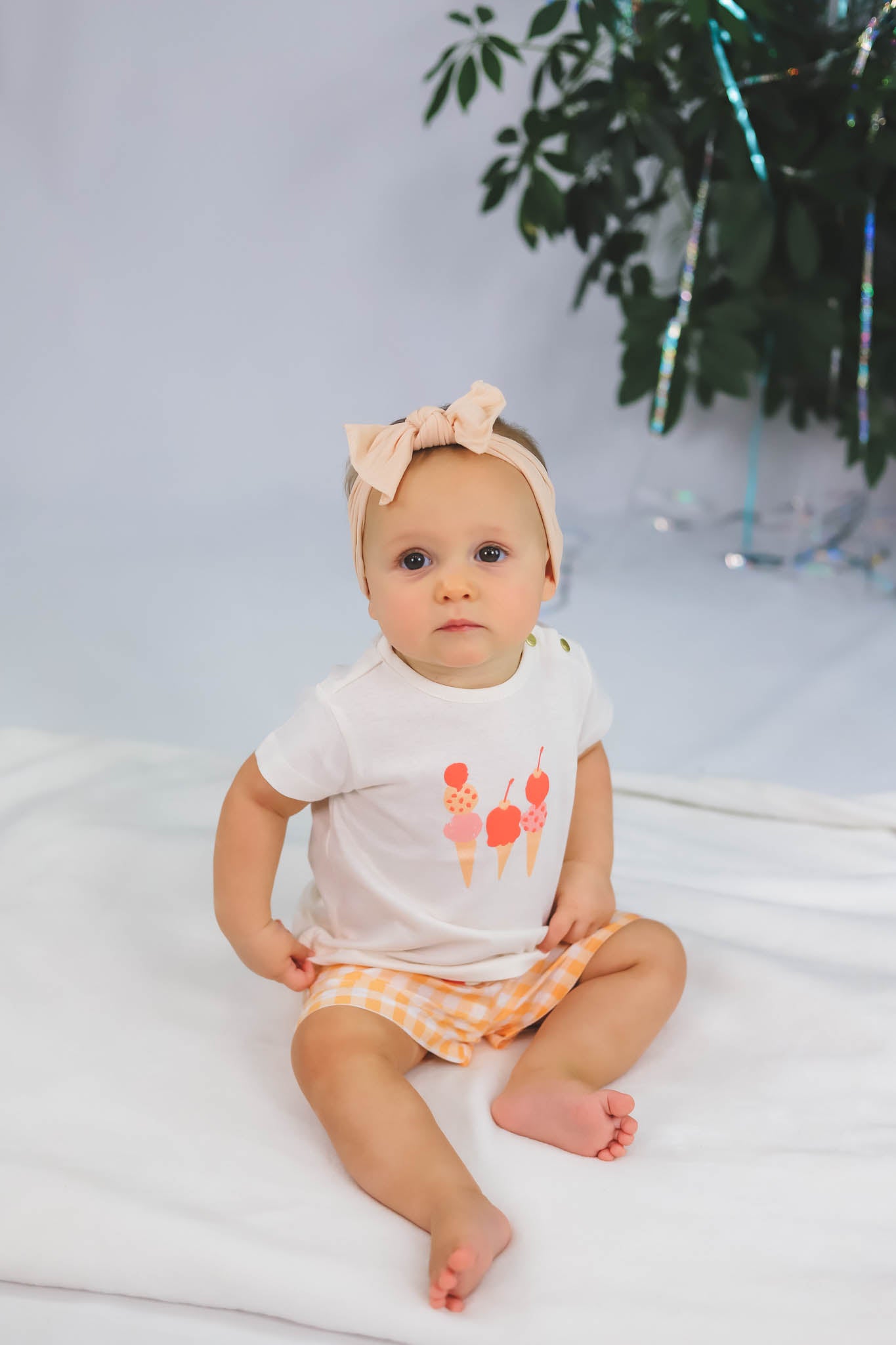 Cantaloupe Checkered Drawstring Short (Baby Girl)