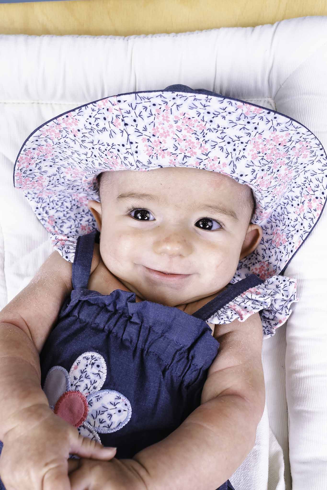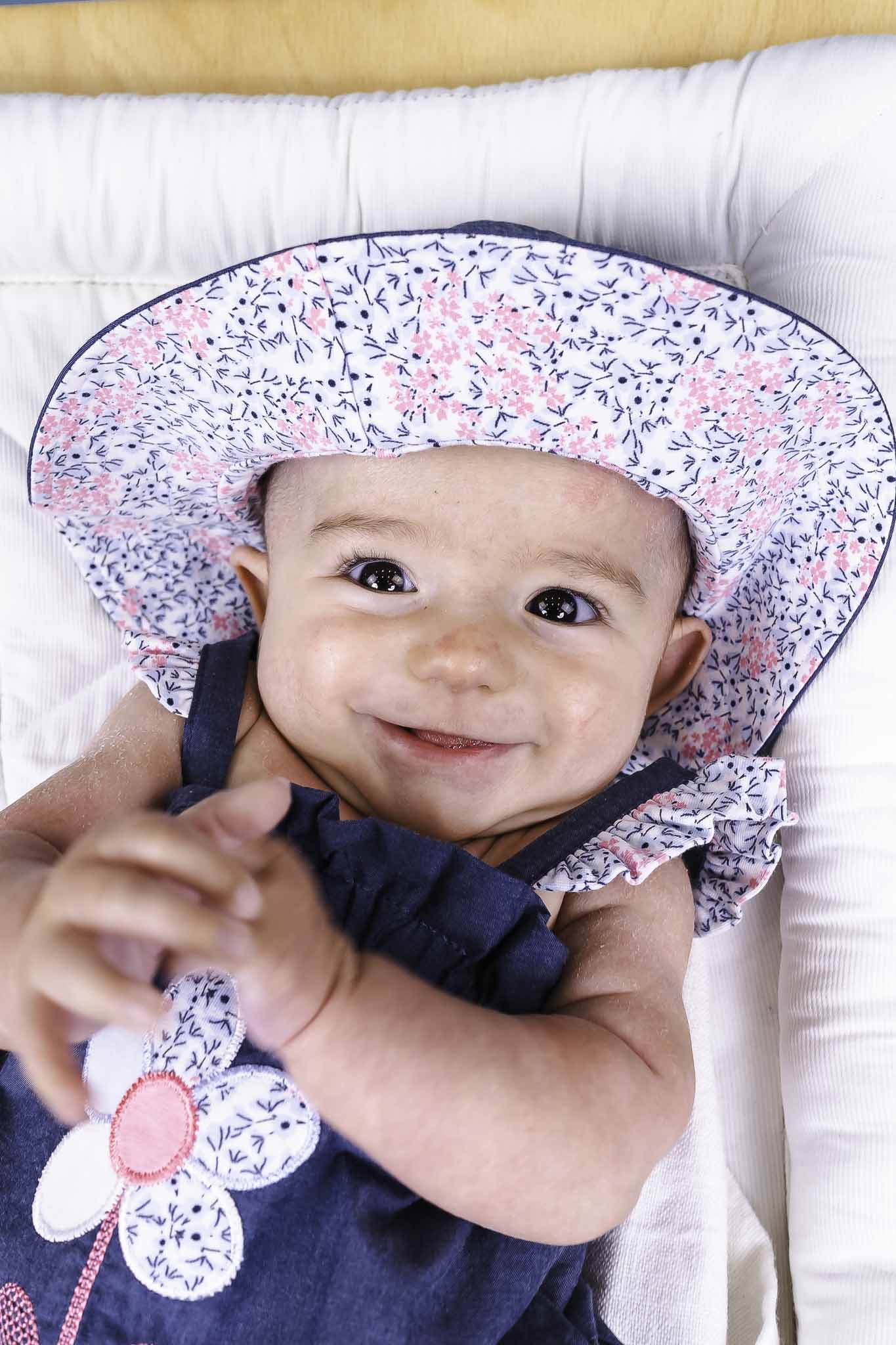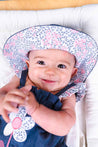 This chambray hat from Musli is baby girl's perfect summer accessory! It features a wide brim, denim fabric, and dainty floral lining.