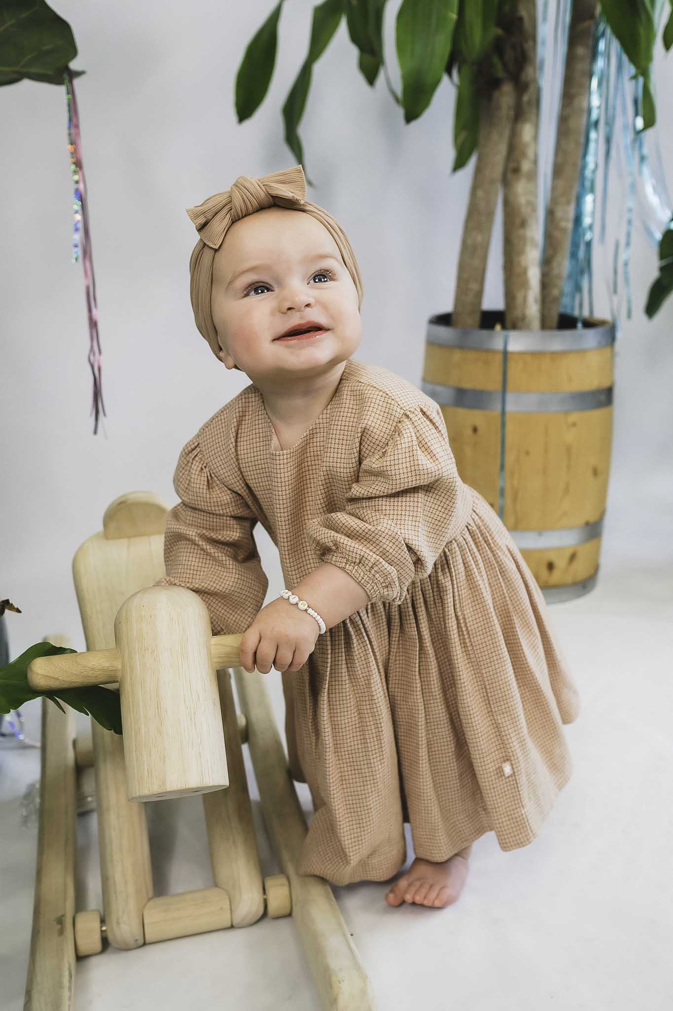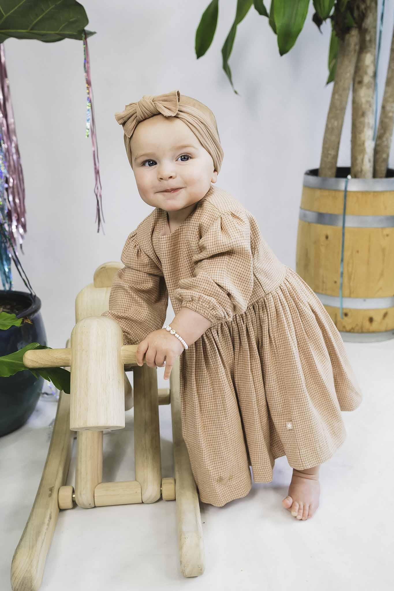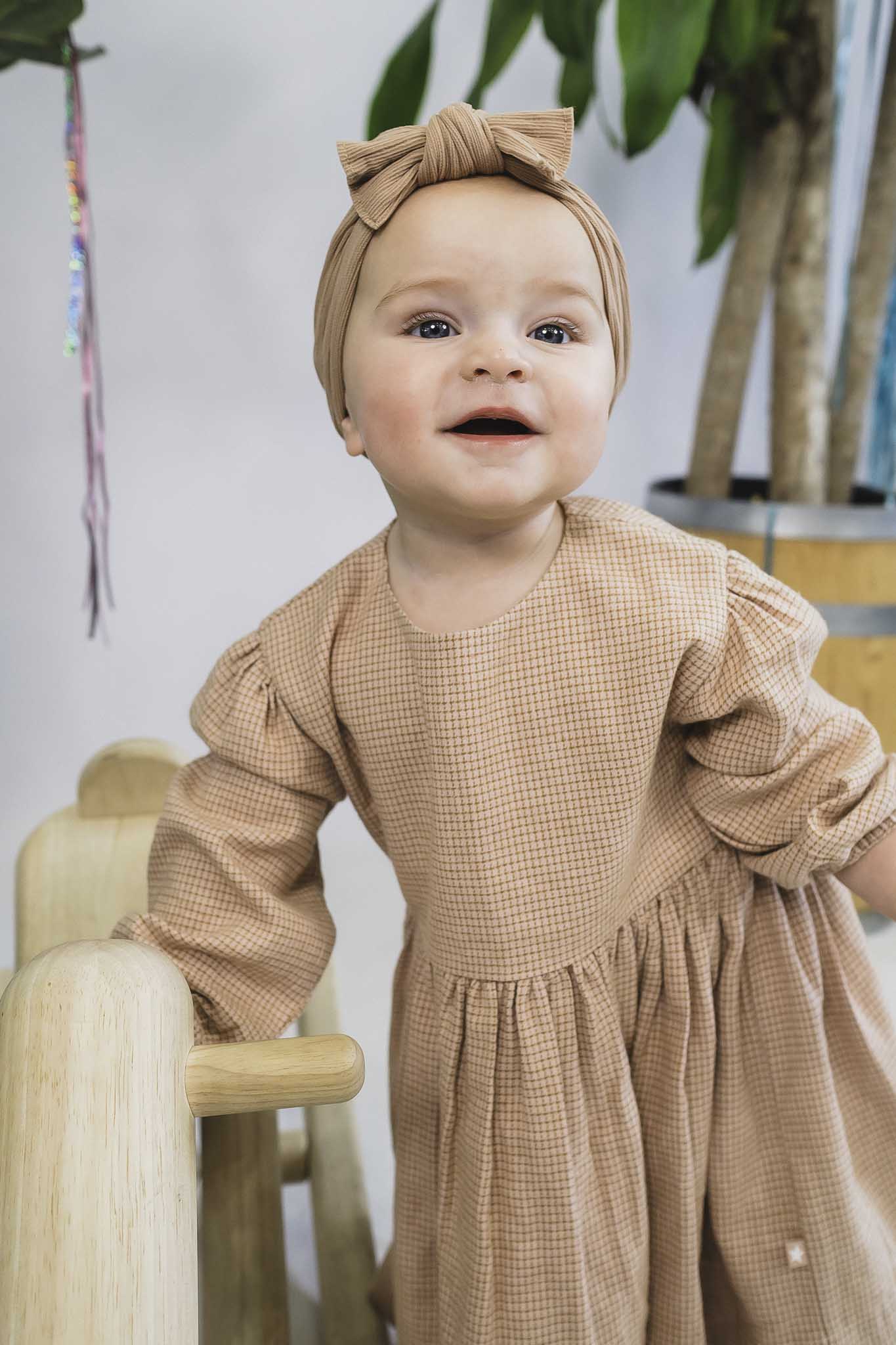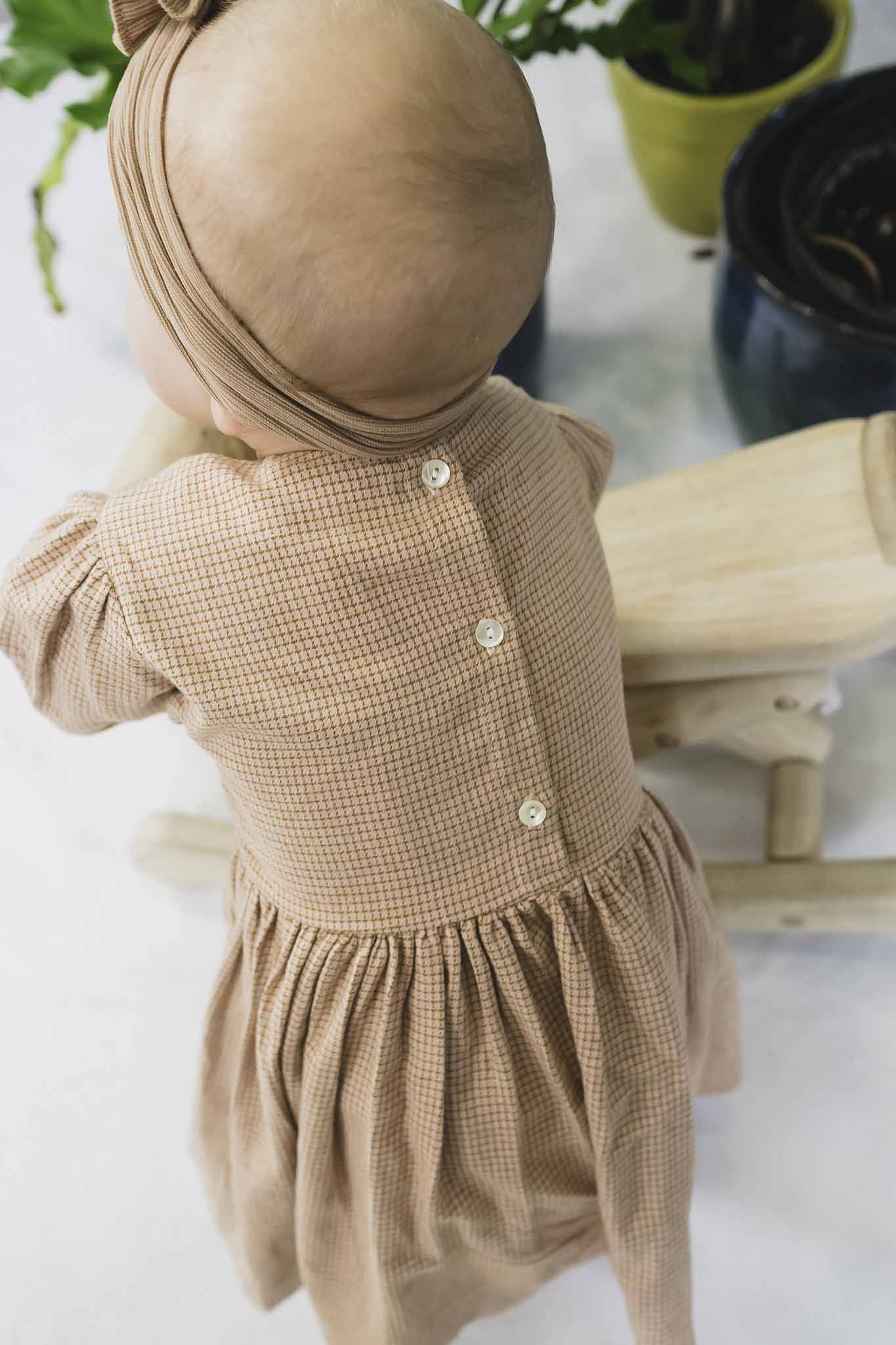 This checker printed frock from Molo is perfect for autumn! It features long sleeves, buttons at the back neck, and hits just above the ankle.