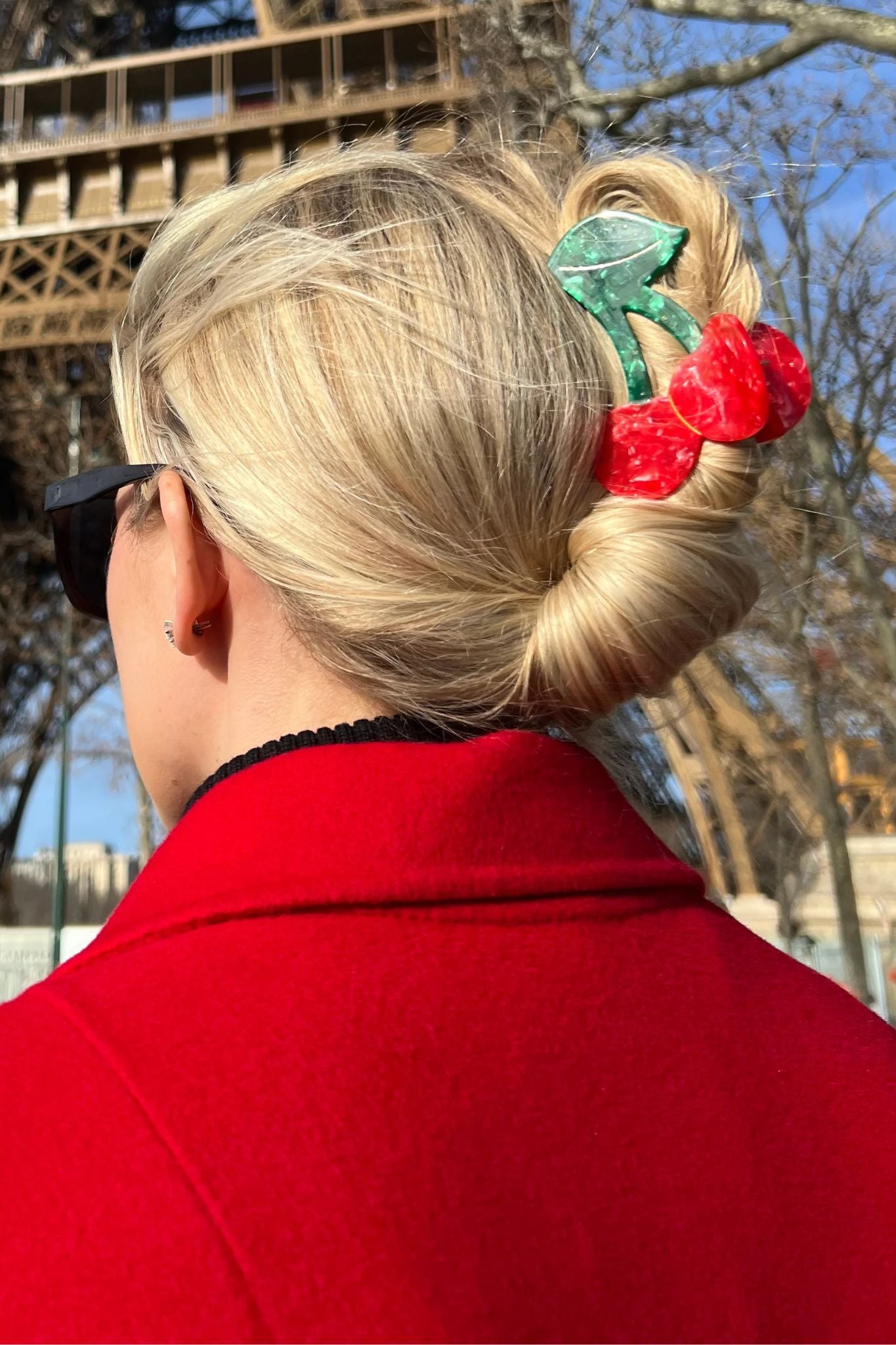 Crafted in small batches, this Cherry Fruit Claw Clip is carefully handmade and hand-painted. It's double-sided design will give you or your little one the sweetest look from every angle.
