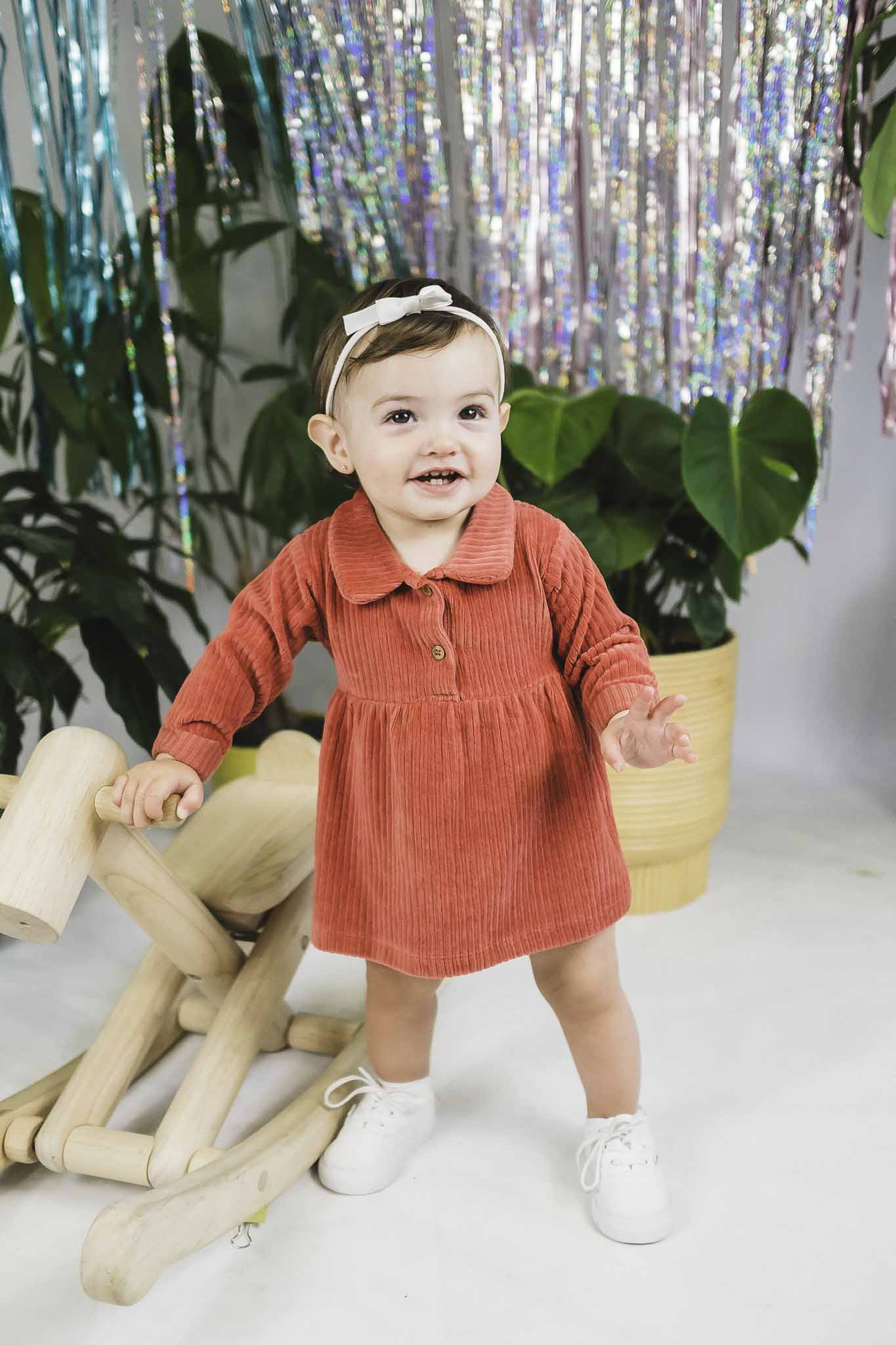 This super sweet pink dress from Riffle features a corduroy fabric, long sleeves, a collar, and buttons at the neckline. Add a pair of Mary Jane flats for the most adorable outfit!