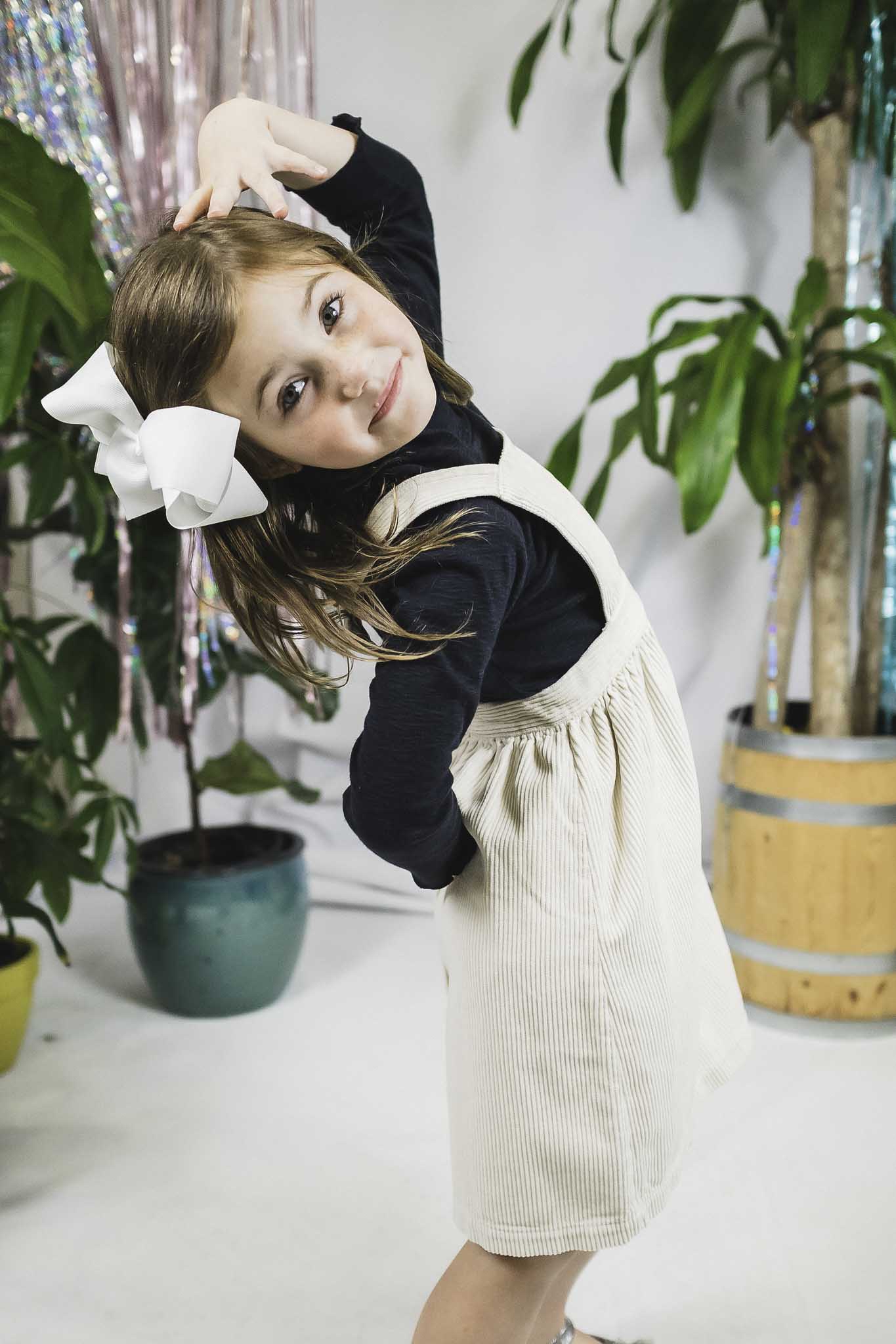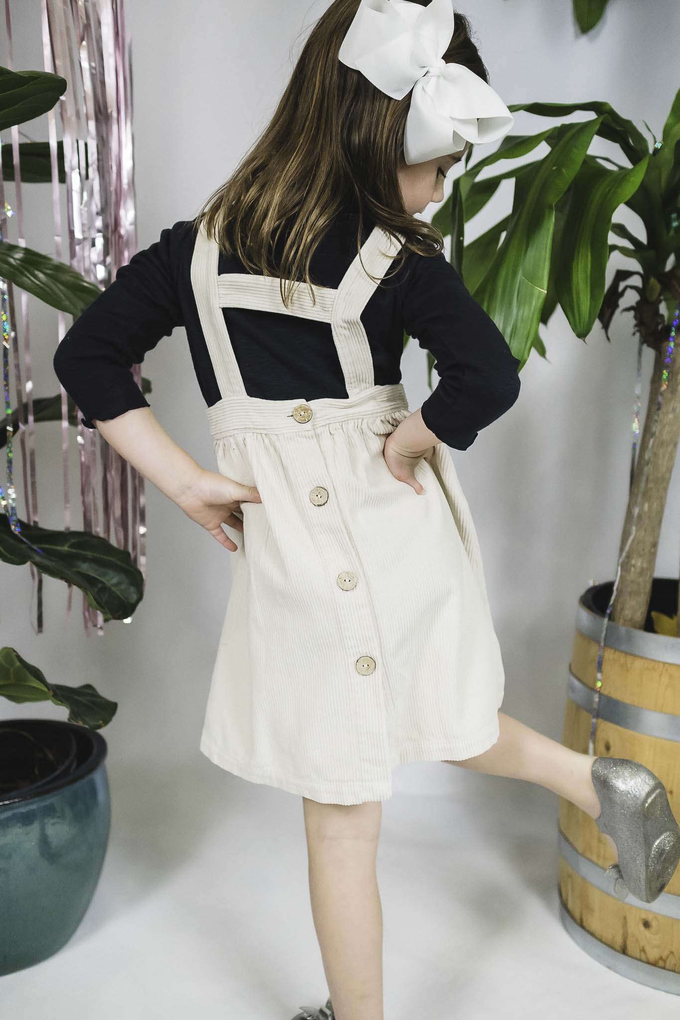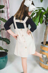 This adorable Play Up dress serves as a classic layering piece in your girl's wardrobe. It comes in cream hue and corduroy fabrication. Layer a contrast turtleneck sweater beneath for the sweetest outfit.