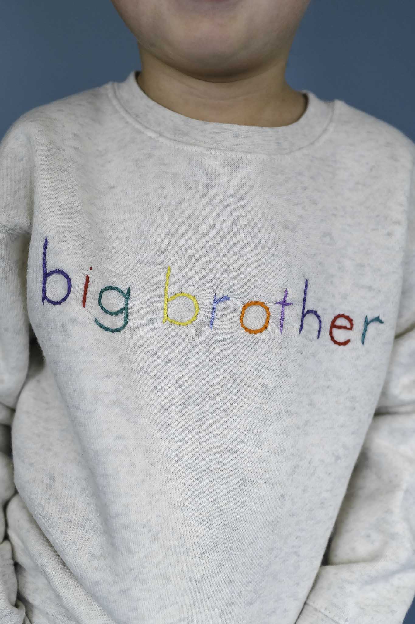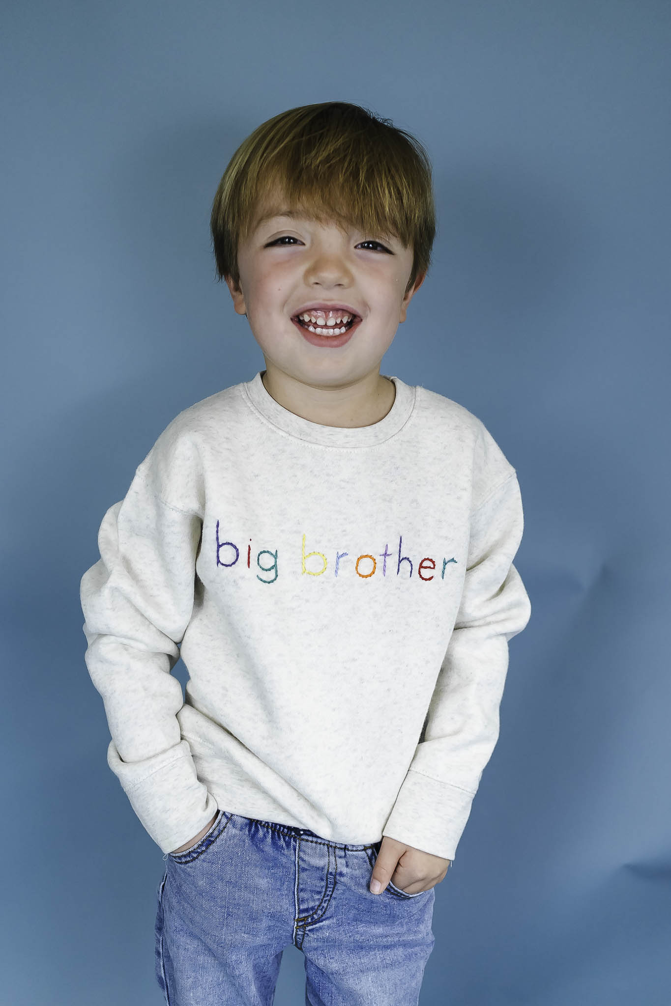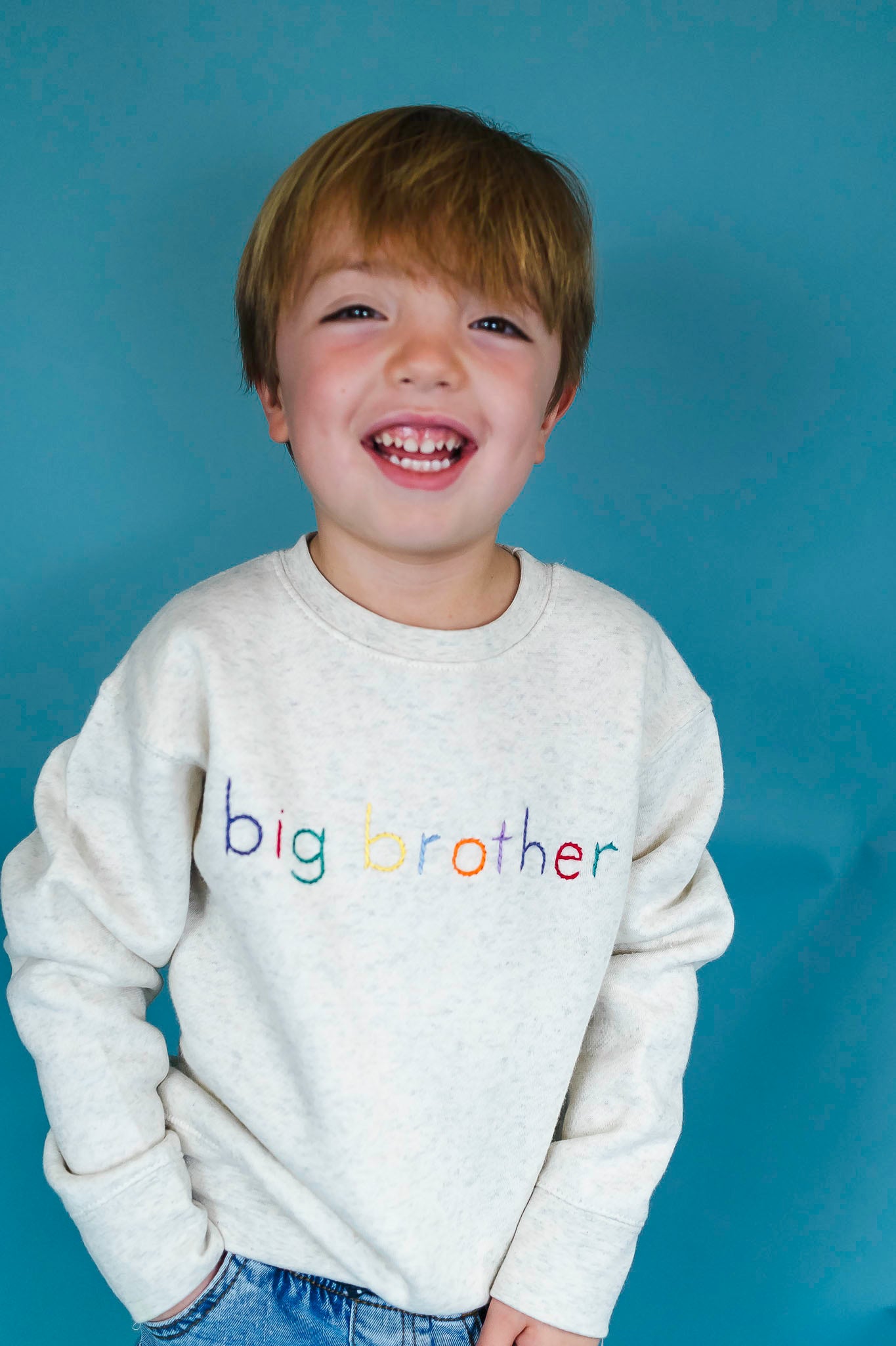 Sweet Olive Street Hand Embroidered Cream Embroidered Big Brother Sweatshirt