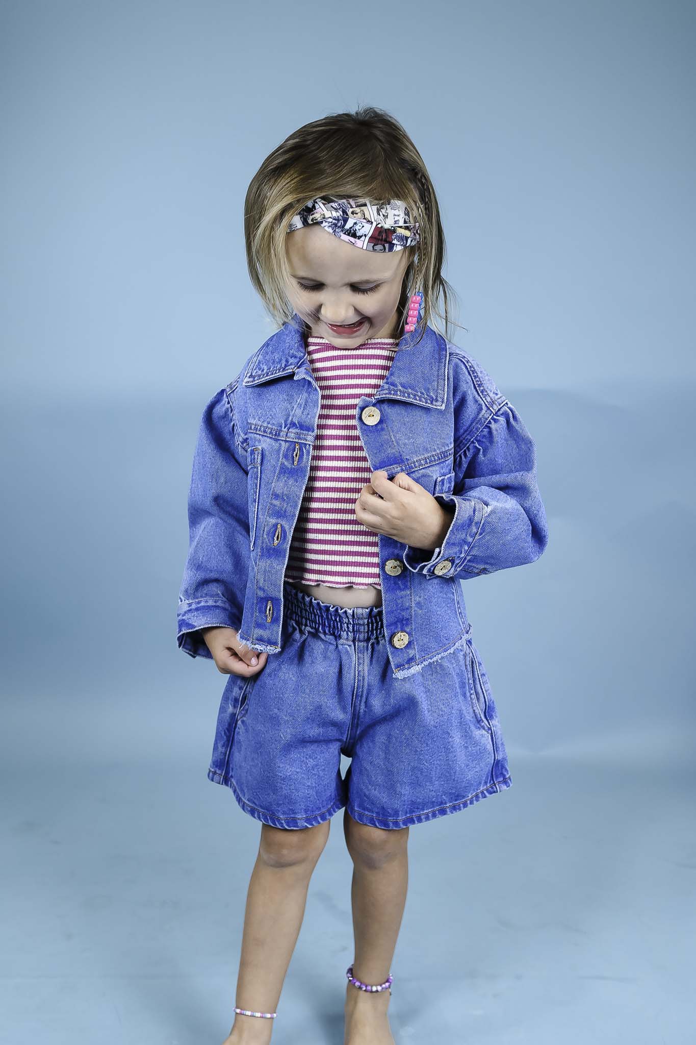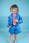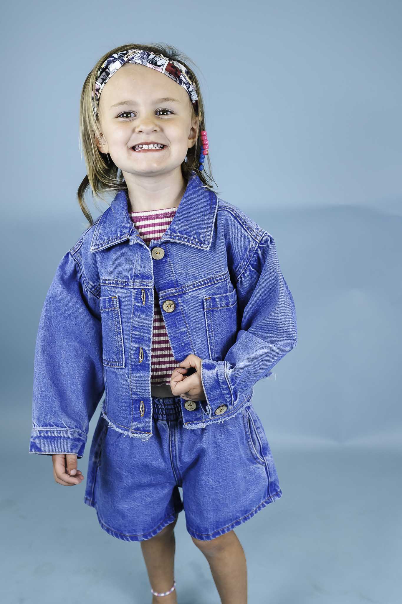 These denim shorts from Play Up are essential for your girl's summer wardrobe! They come in a medium wash and feature a wide, elastic waistband.