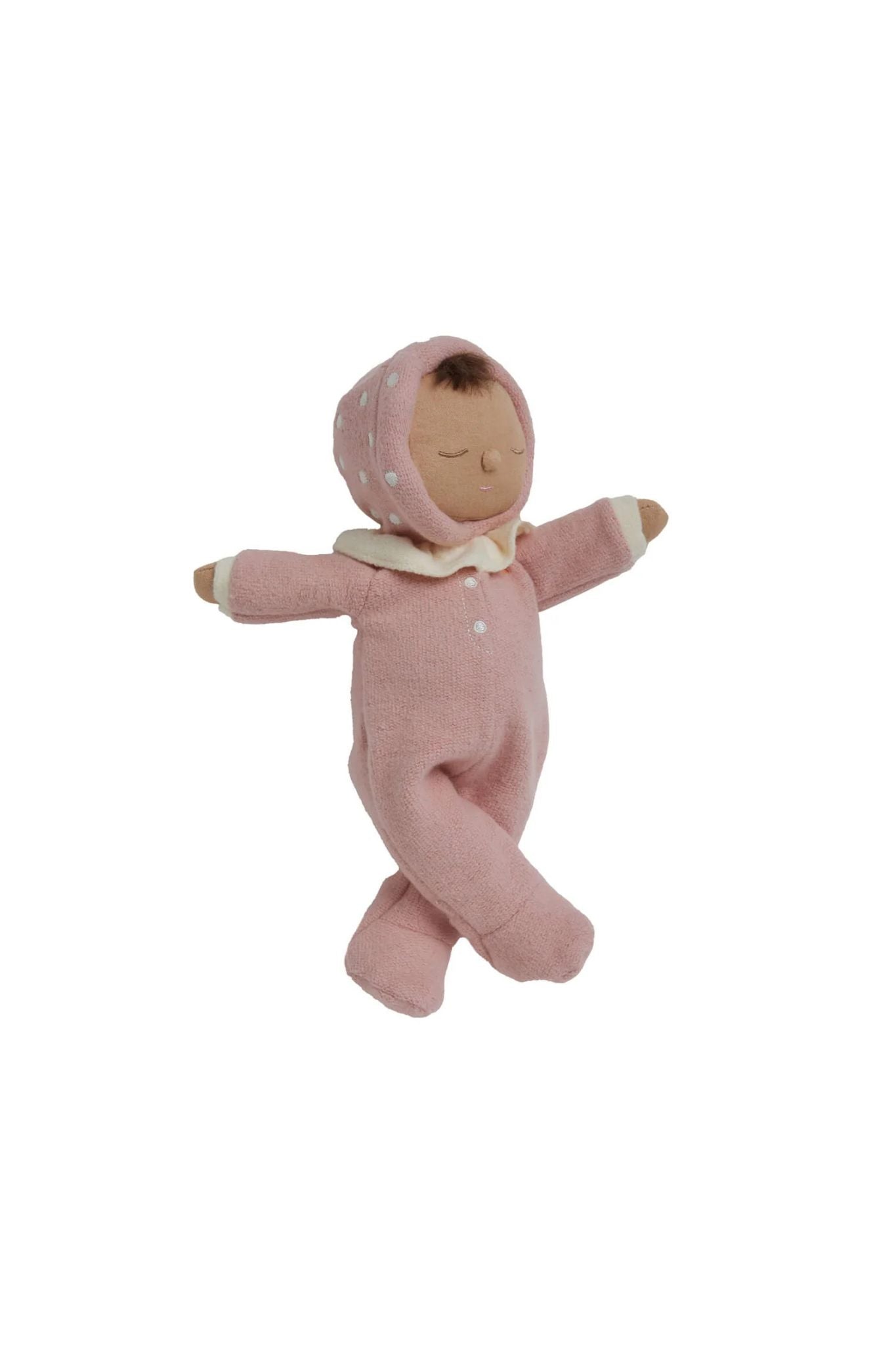 Blushing pink and full of charm, Toadstool Pip is a pocket-sized daydream dressed for woodland whimsy. With a pastel mushroom-cap hood, delicate embroidered spots, and a ruffled collar for extra enchantment, Pip is ready for all the softest snuggles.