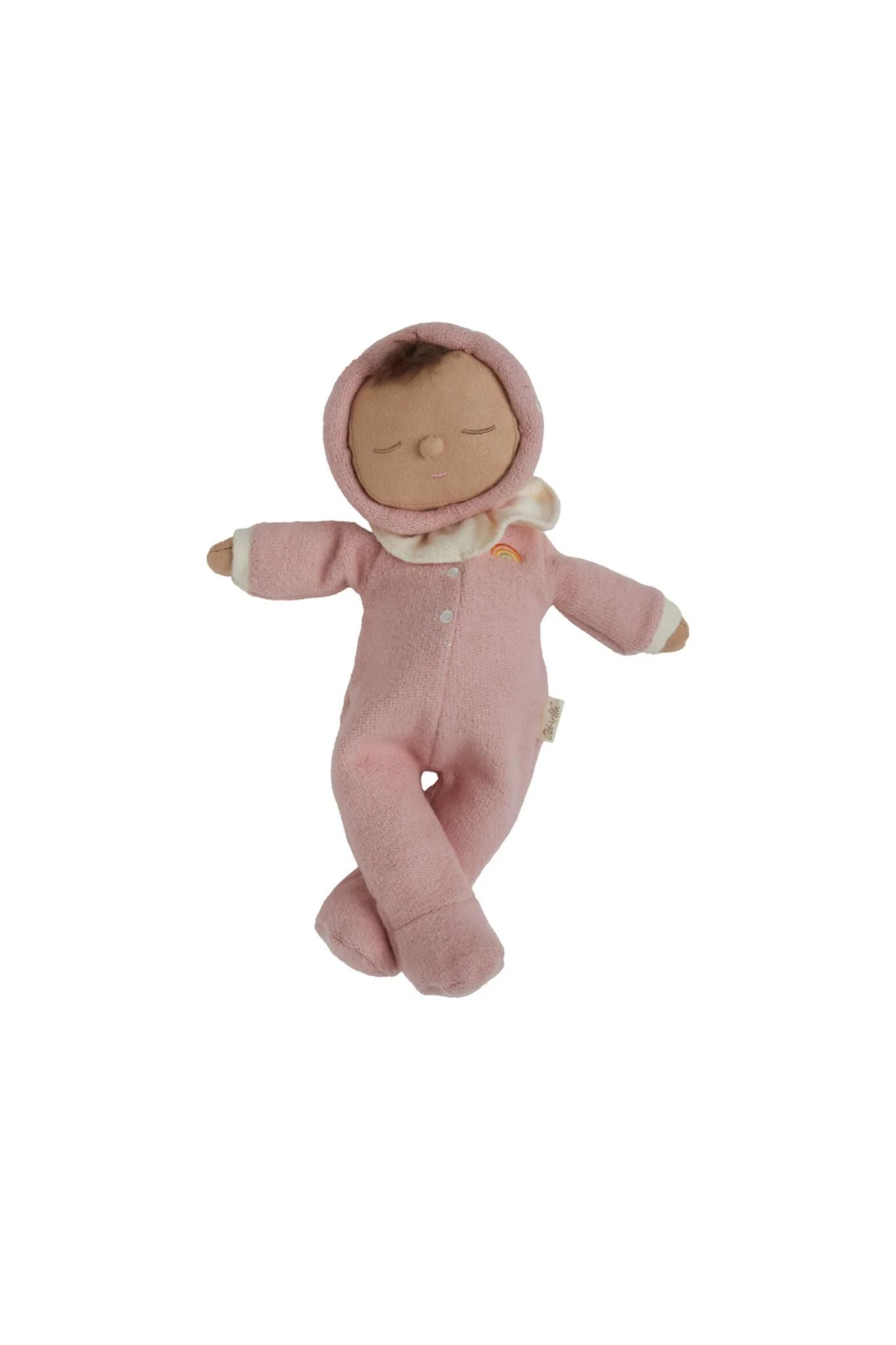 Made from the gentlest cotton and designed with a lightly weighted body for calm and comfort, this Dozy Dinkum is perfect for naptime, playtime, and every cuddle in between. A sweet brown curl peeks from under their hood, just waiting for tiny fingers to pat and stroke.