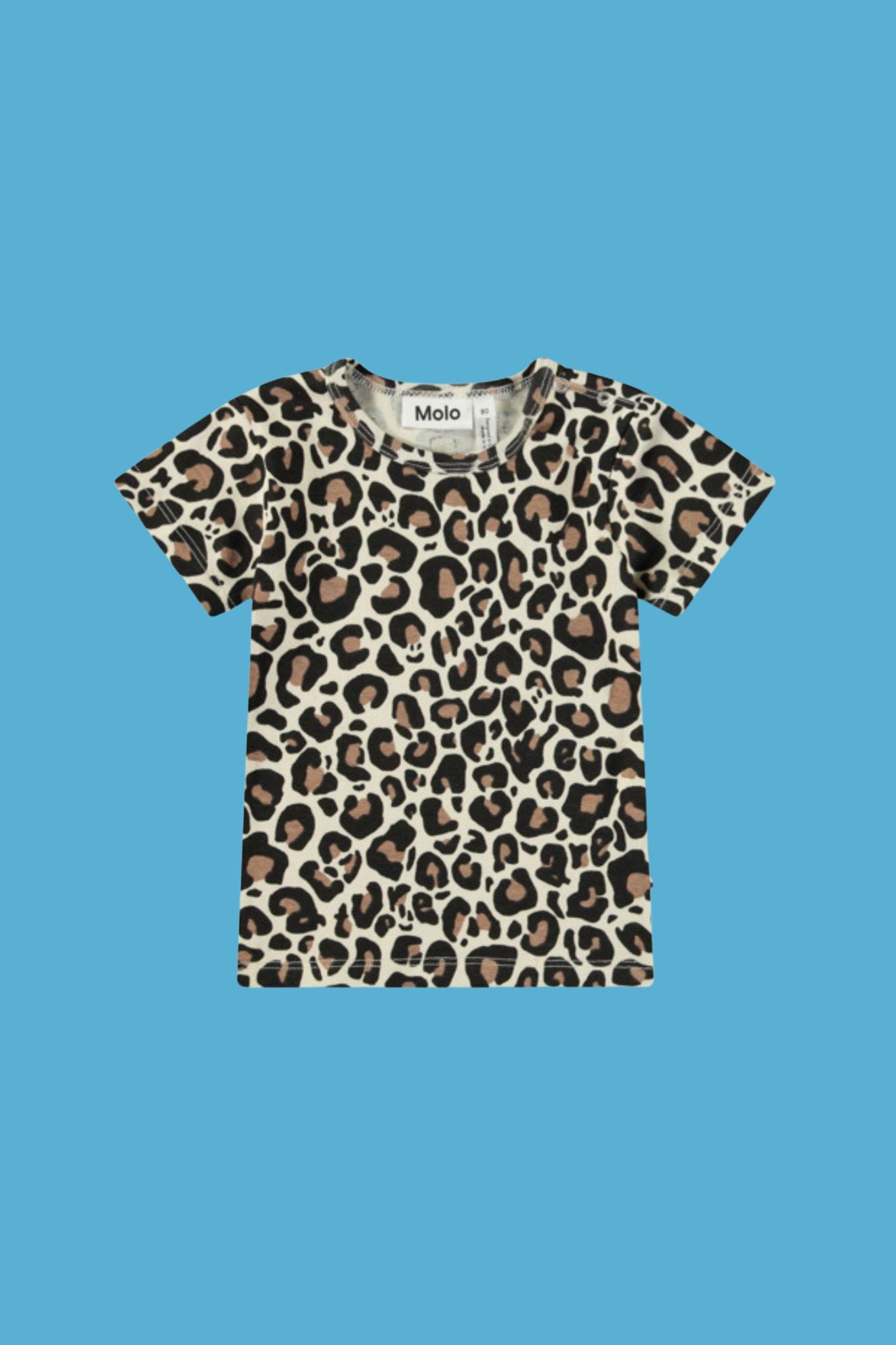This everyday t-shirt from Molo comes in a leopard print and features short sleeves. Add a pair of jeans and sneakers for the perfect school day outfit.