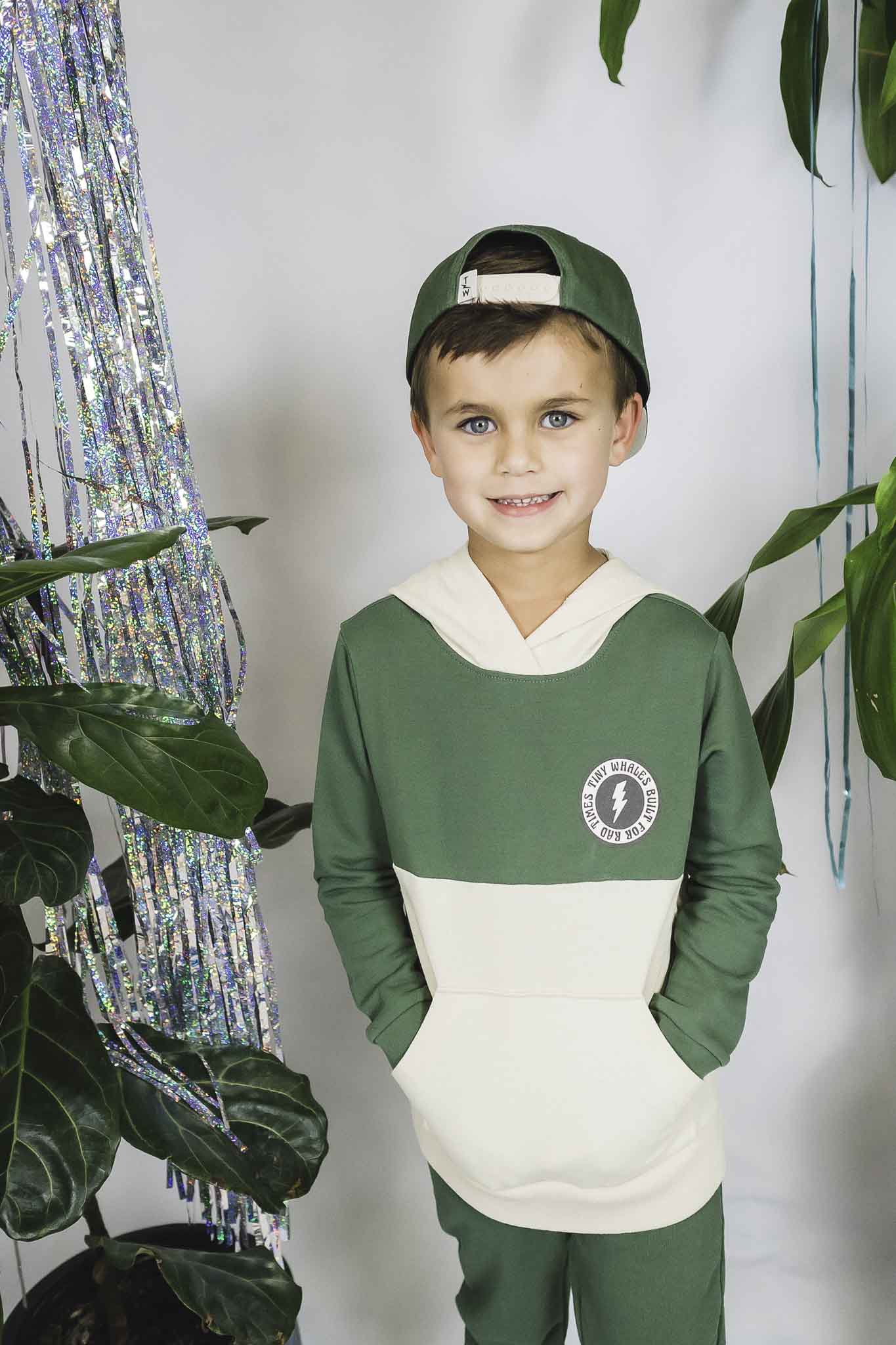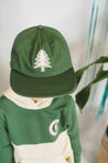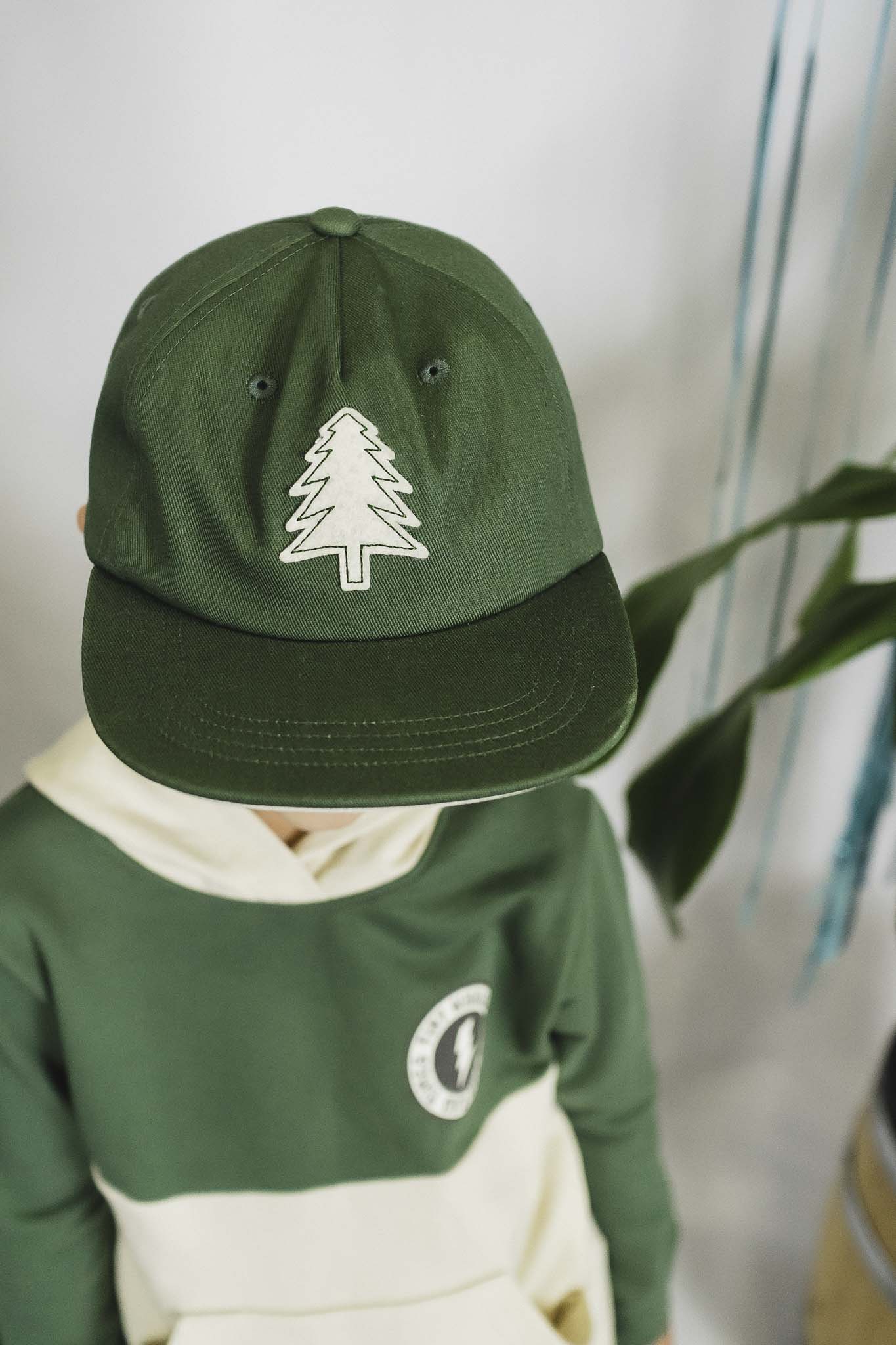 Take a hike... literally! This sweet cap from Tiny Whales comes in a forest green hue and features a tree patch at the front.