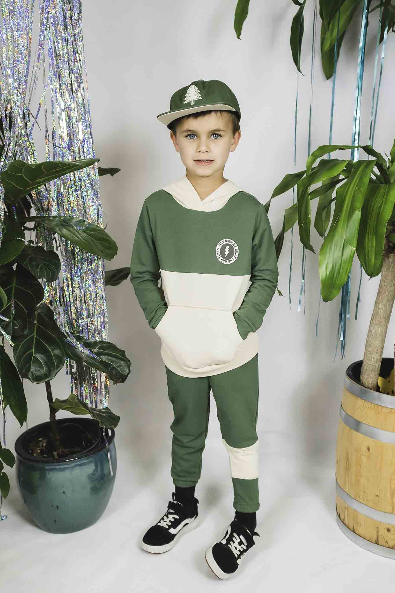 These ultra-cozy jogger sweatpants from Tiny Whales feature a drawstring waistband, single white stripe along one leg, and elastic at the leg openings. Pair with the Forest Trailblazer Hoodie to make a matching set.