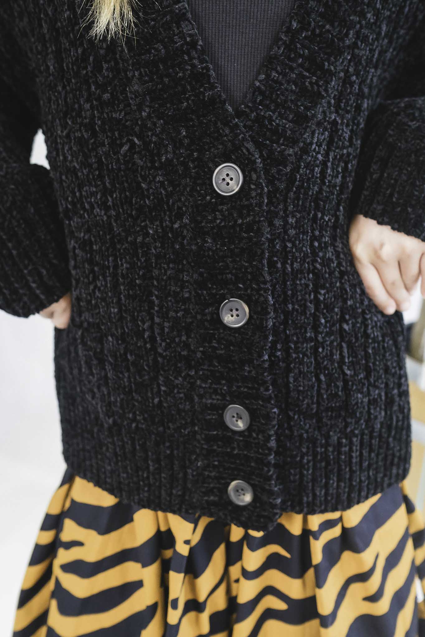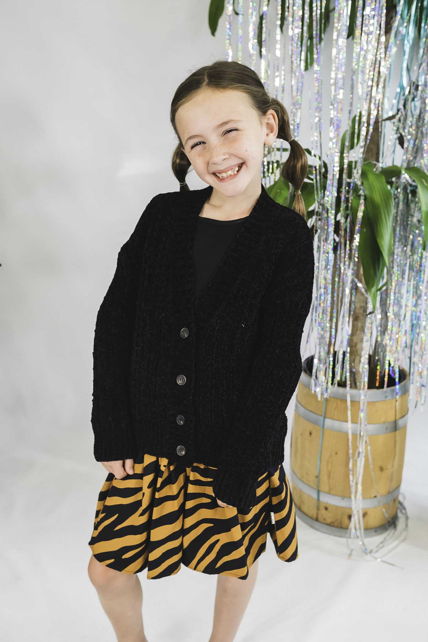 This everyday cardigan sweater from Molo serves as the perfect layering piece! It features buttons down the front, a ribbed texture, and a super soft handfeel.