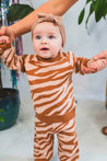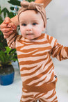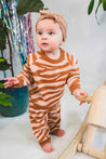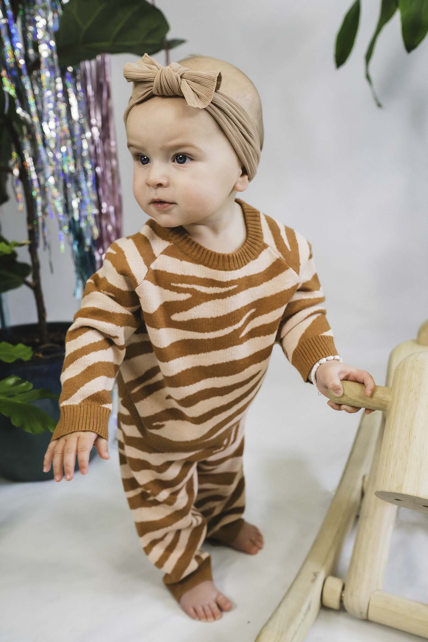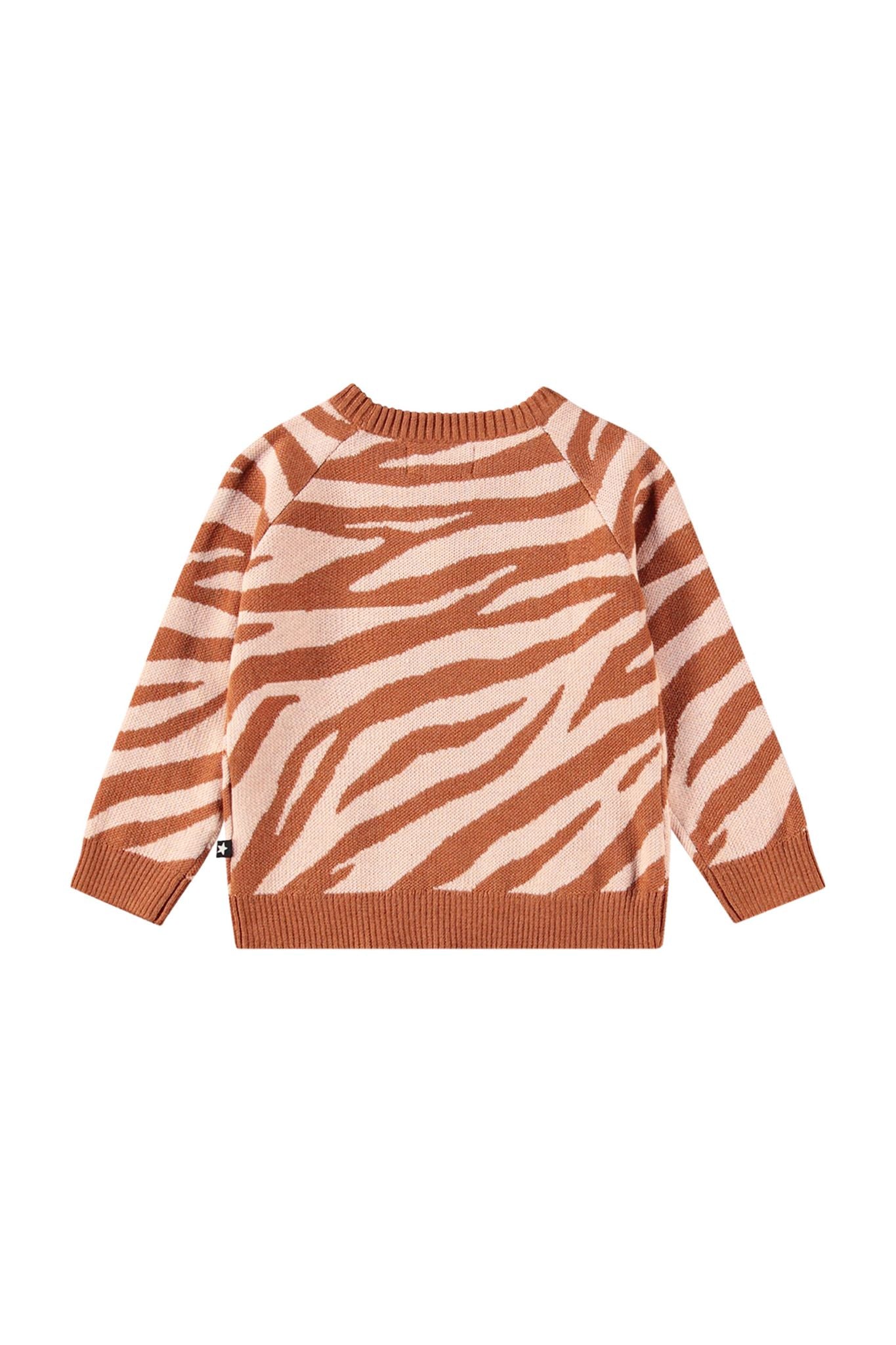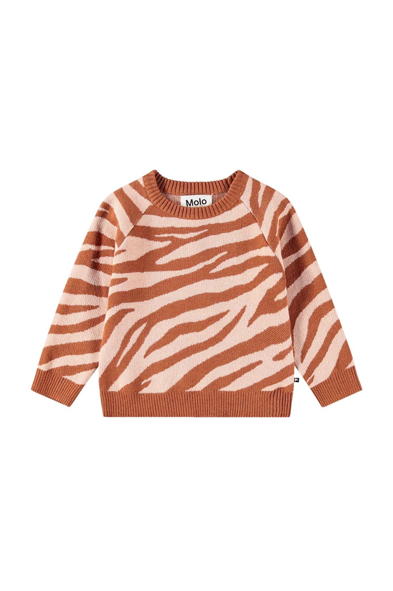 Outfit baby girl in this cozy knit jumper from Molo! It features an allover zebra print in orange, long sleeves, and a round neckline.