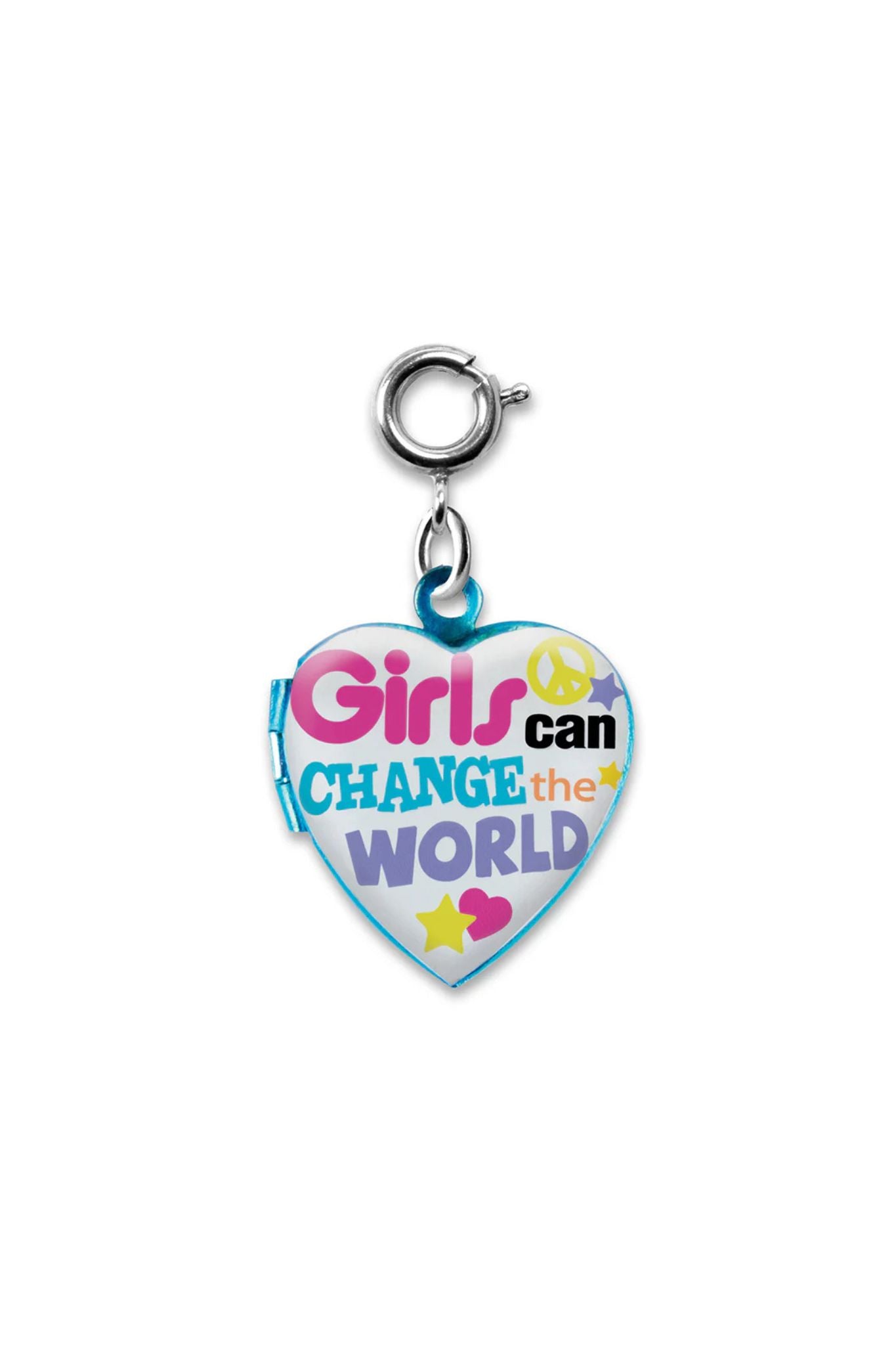 Empower your accessory game with the Girls Can Change The World charm from Charm It! Featuring vibrant colors and an inspiring message, this charm is perfect for bracelets, backpacks, or keychains.