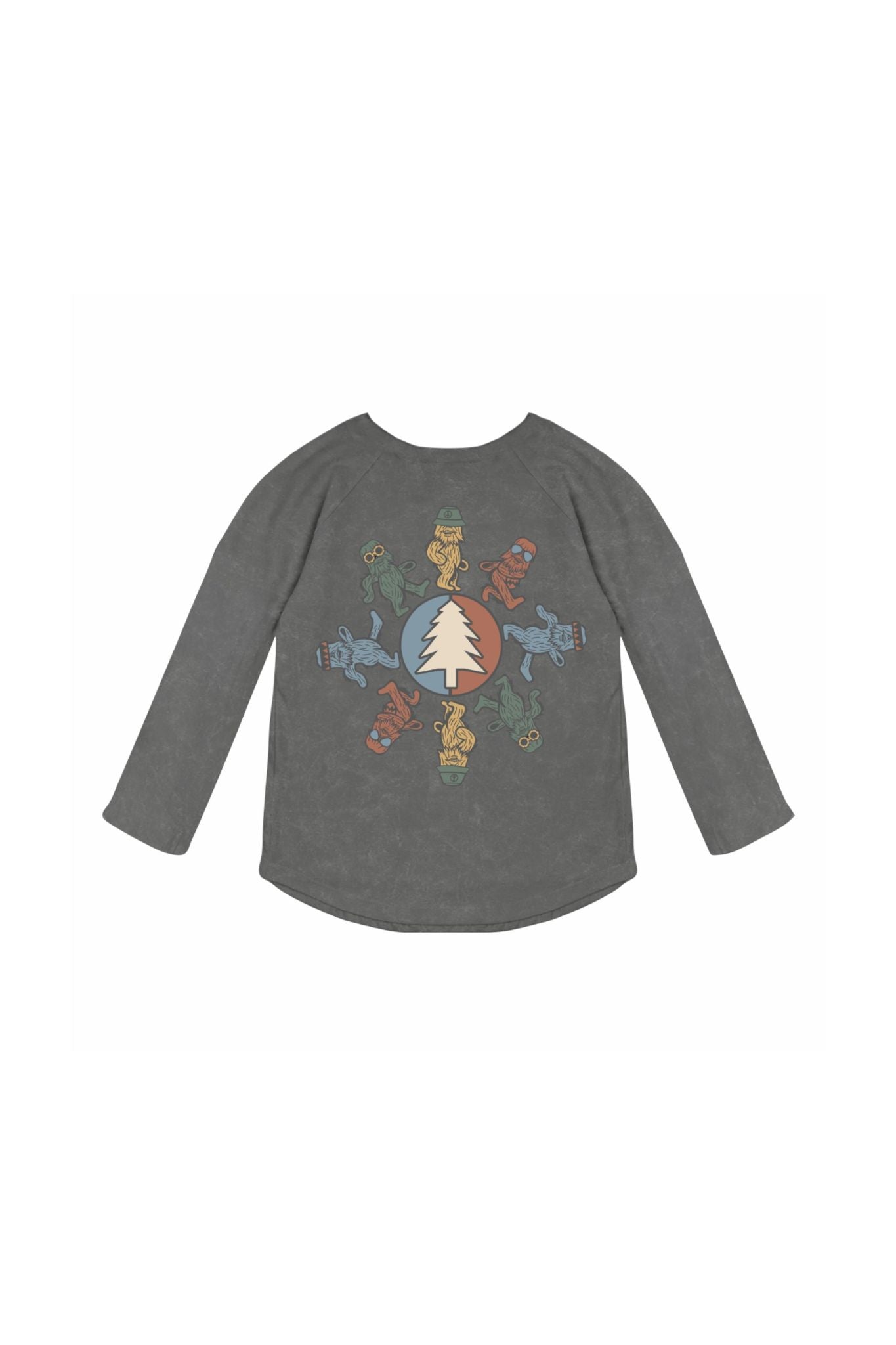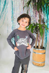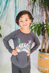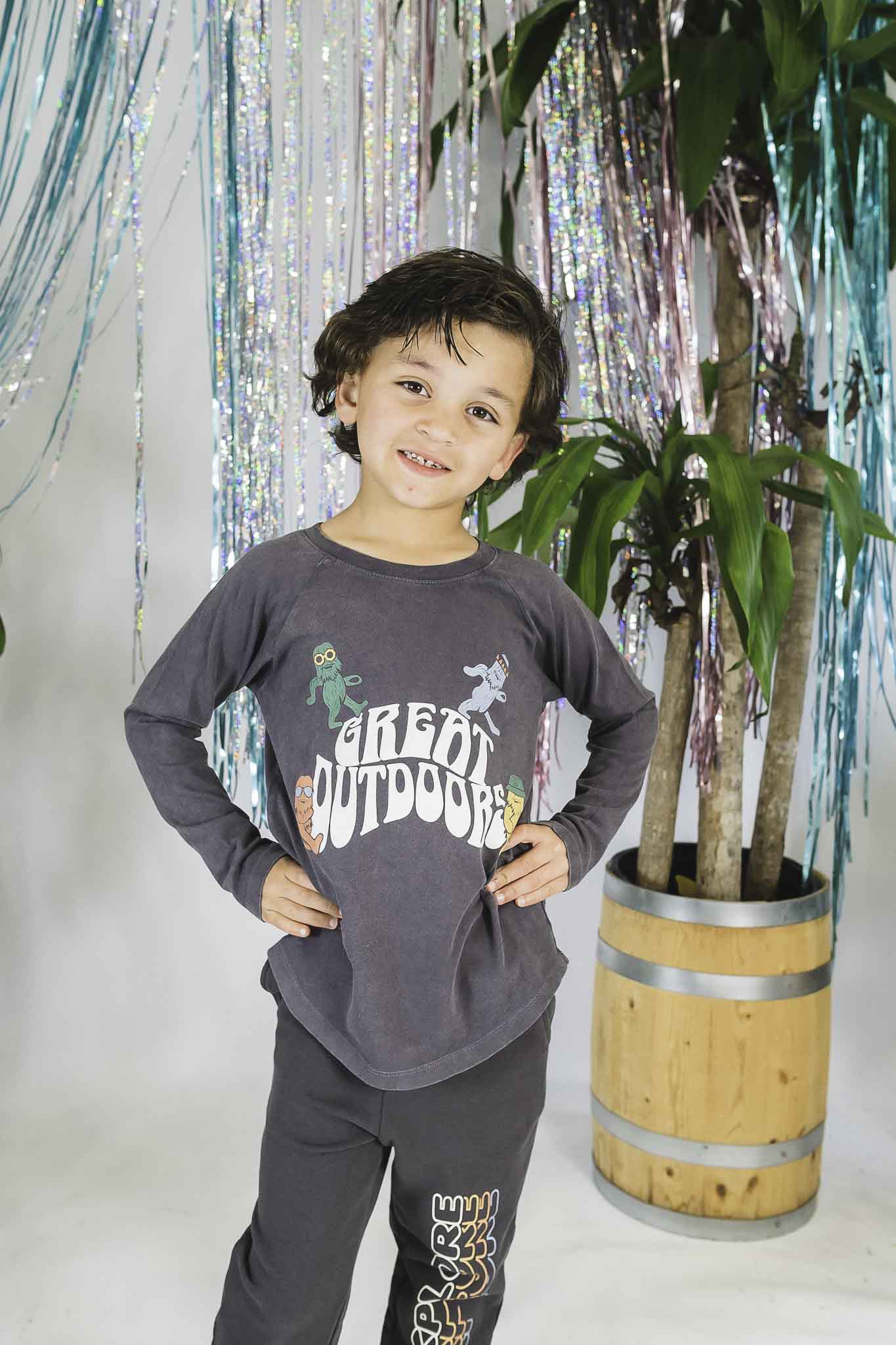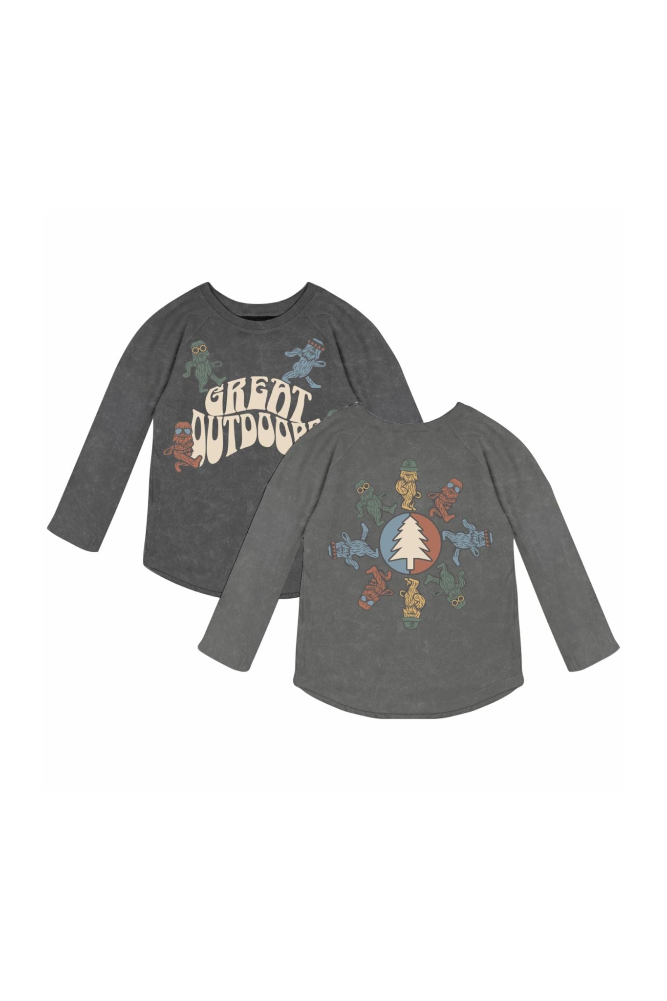 Get outside! This long-sleeved, Tiny Whales tee comes in grey and features 'Great Outdoors' written across the front. Fun characters make up both the front and back graphics.