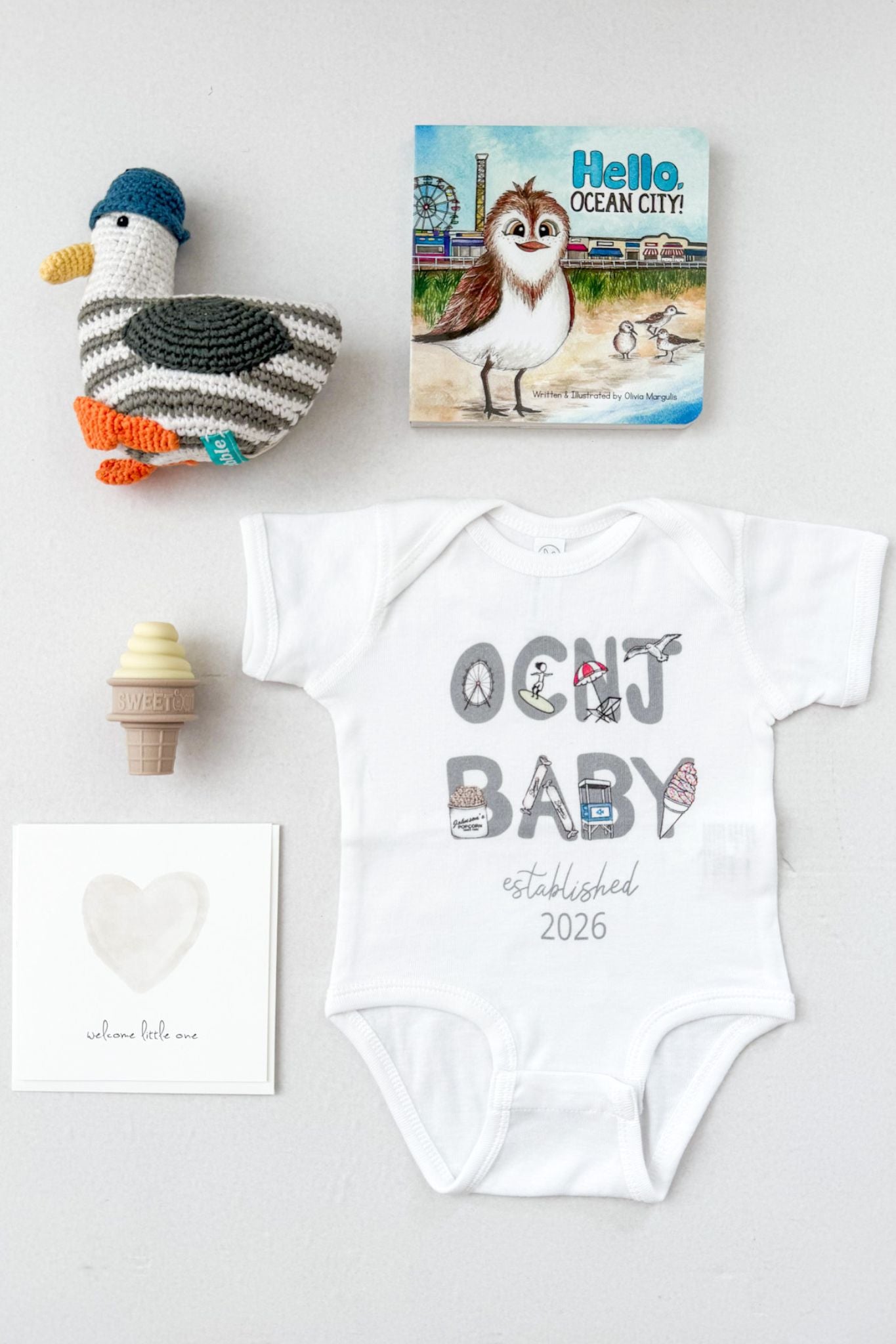 Priced at $10 off when you buy the bundle, our BRAND NEW baby gift boxes make the perfect gift for any new baby! This OCNJ Baby Gift Box is just what your Ocean City loving parents need.