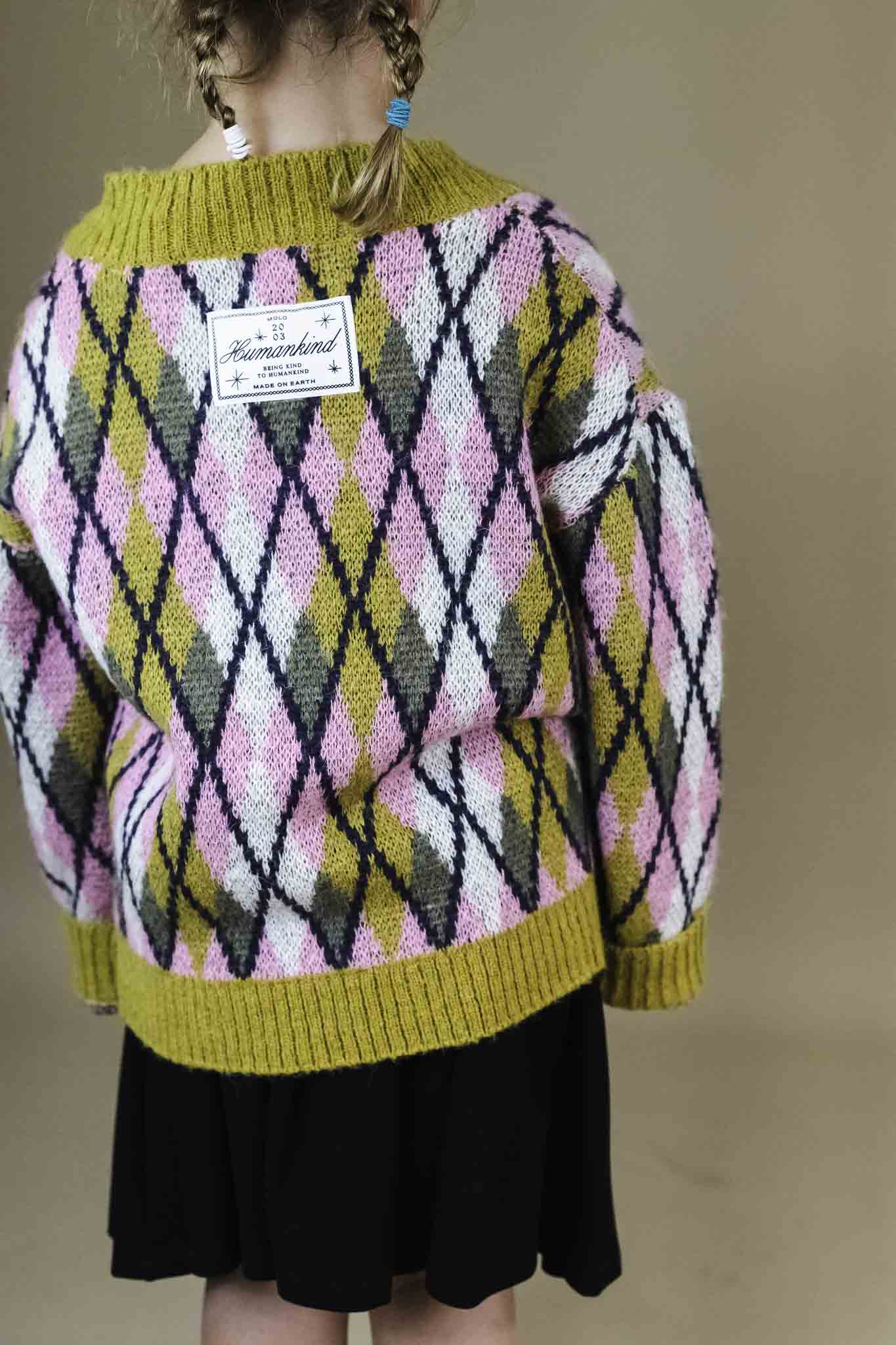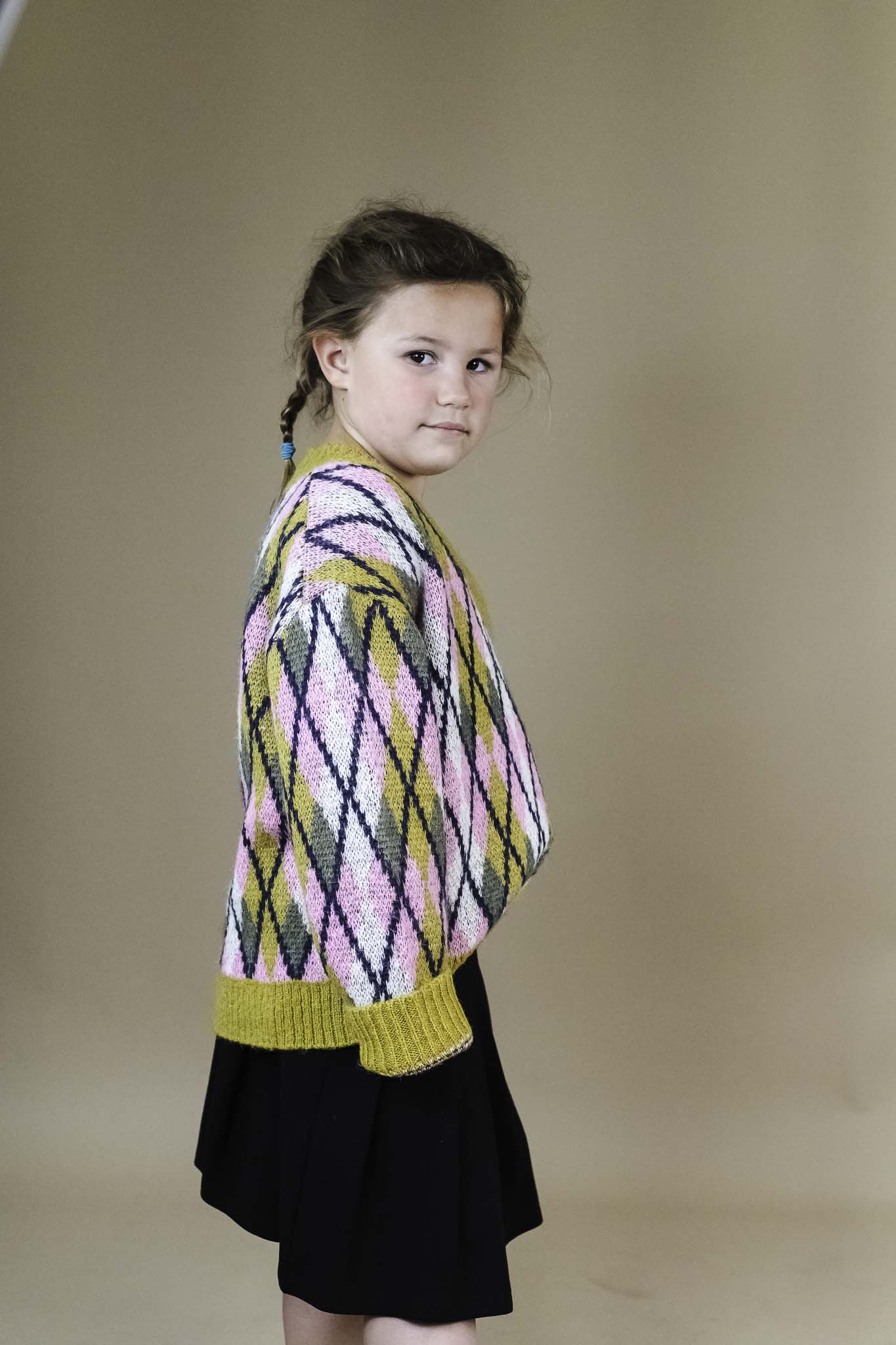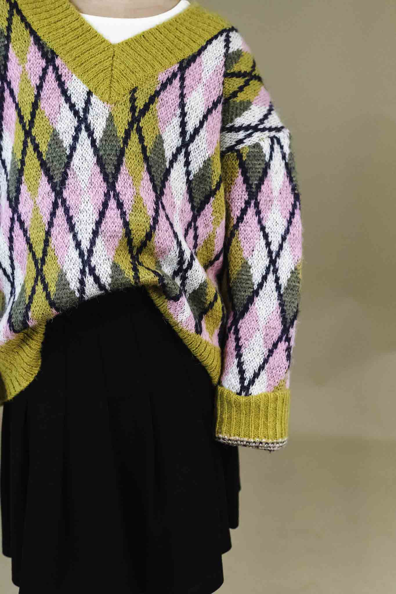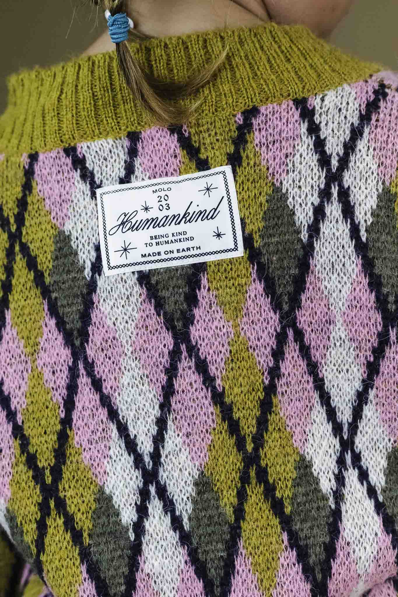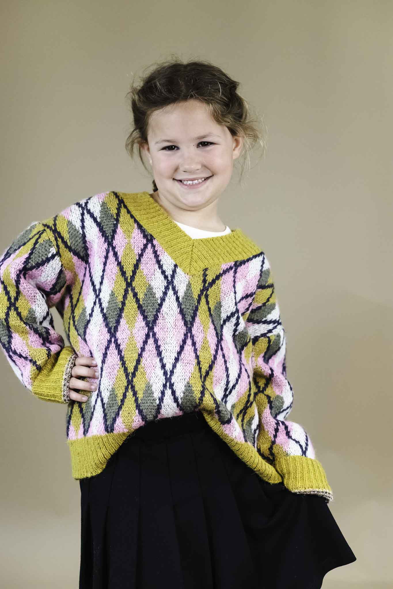 Say hello to cozy with the Gwenda Big Argyle Sweater by Molo made from a super soft alpaca wool blend. It’s got fun raglan balloon sleeves that add extra puff, plus a v-neck ribbed collar that adds some serious style. Long ribbed cuffs and a ribbed waist keep things stylish, because who says warmth can’t look this cute?
