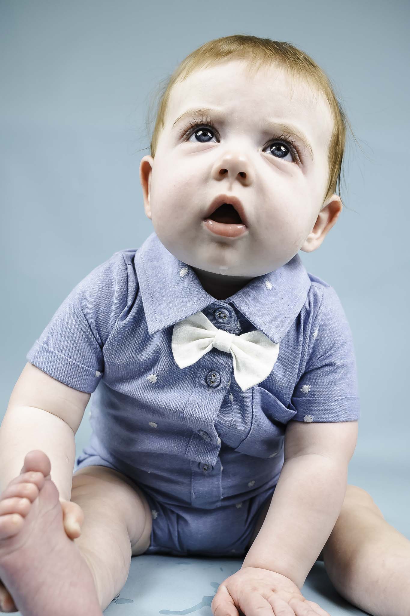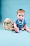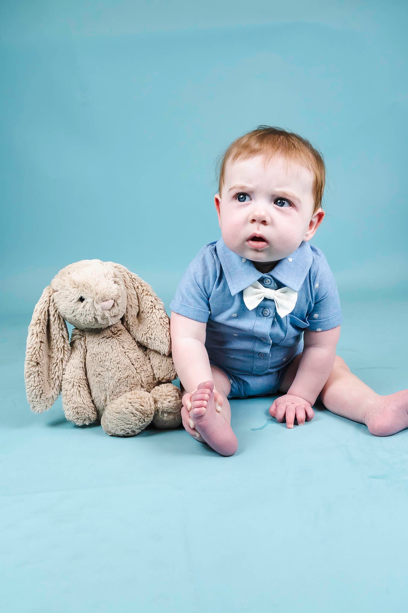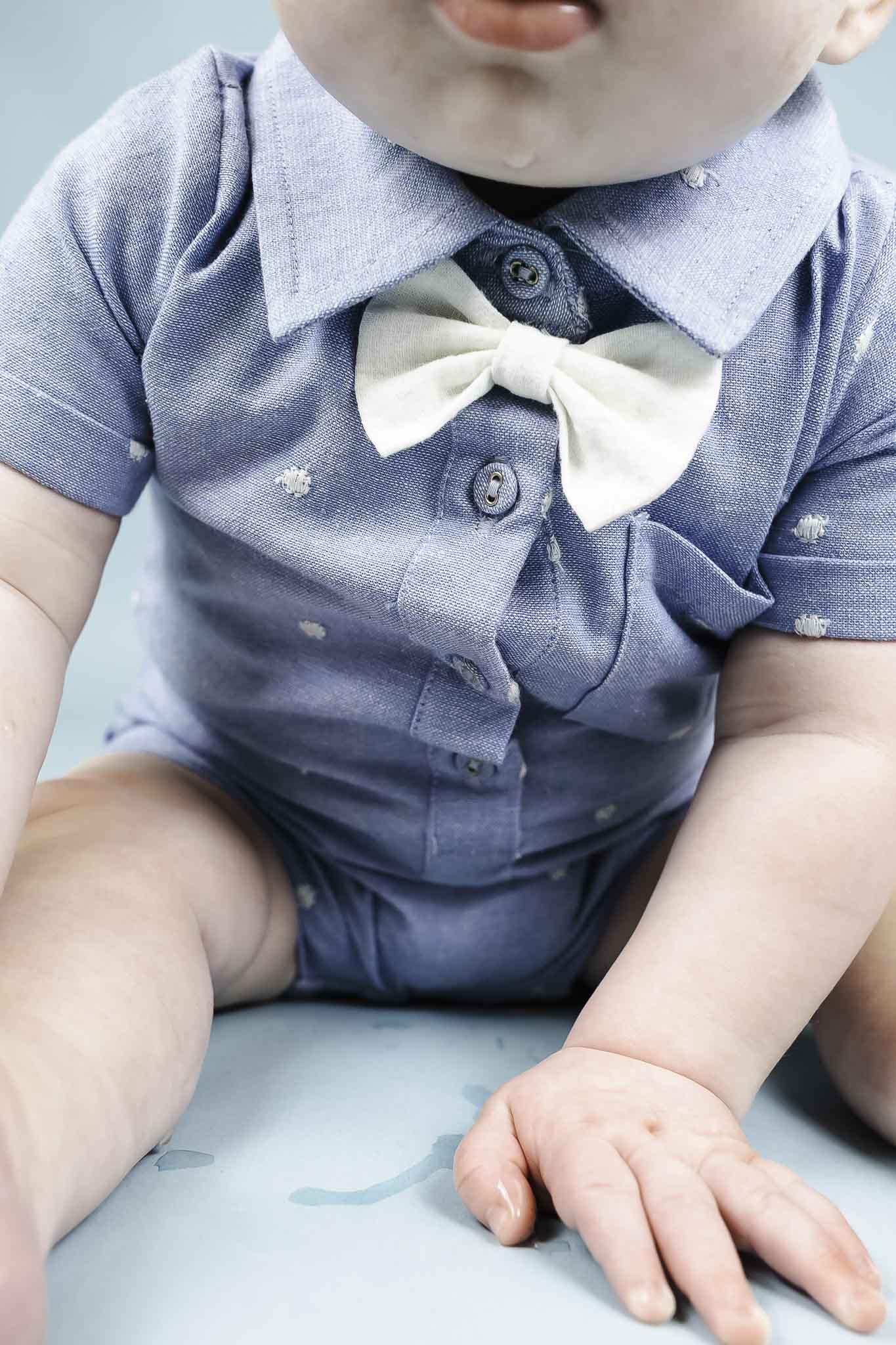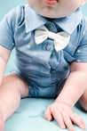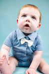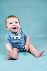 Baby boy is cute as can be in this chambray romper by Viverano! It features short sleeves, a collar, buttons down the front body, and a single chest pocket. A contrast bowtie makes for the perfect finishing touch.