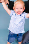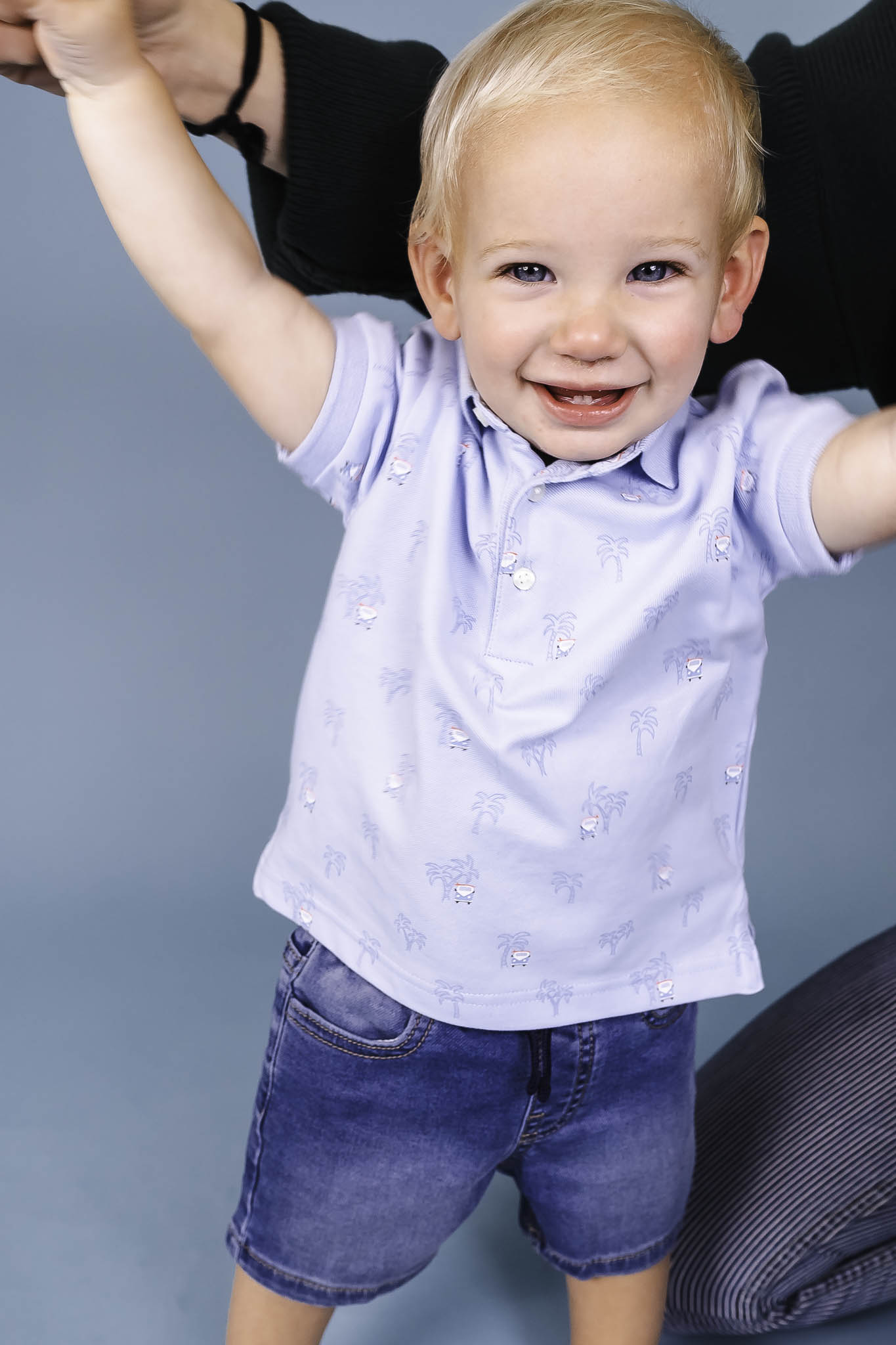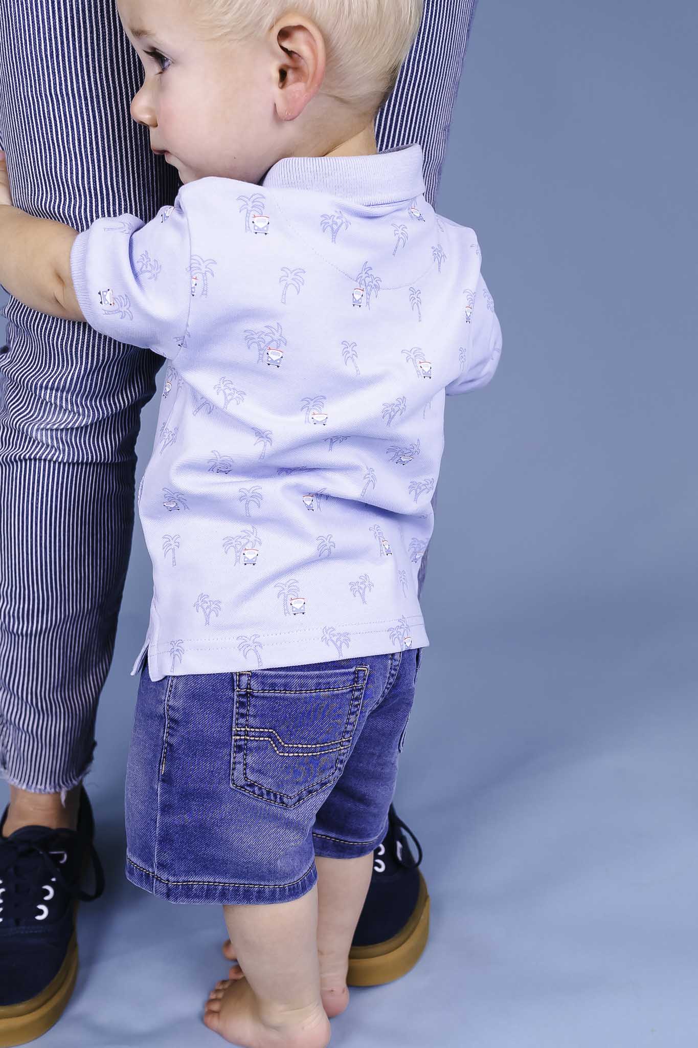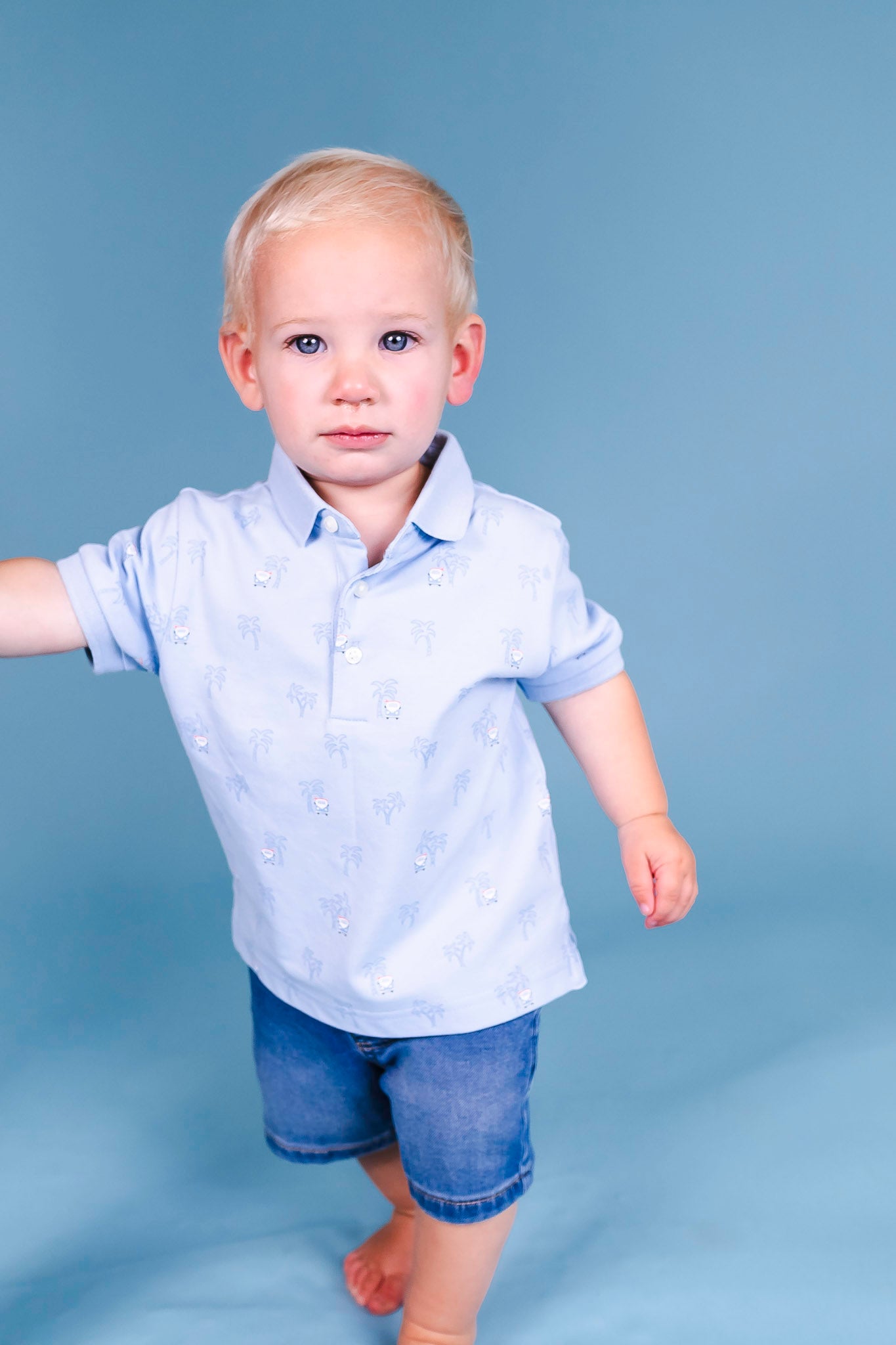 This polo tee from Mayoral comes in a light blue hue and features three buttons at the neckline. The sweet palm tree print makes it a perfect pick for summertime.