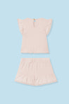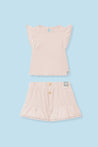This pointelle set by Snug comes in a soft pink hue and includes a tee and shorts. Dainty, lace trimmed ruffles adorn each piece and the shorts have an elastic waistband for added comfort.
