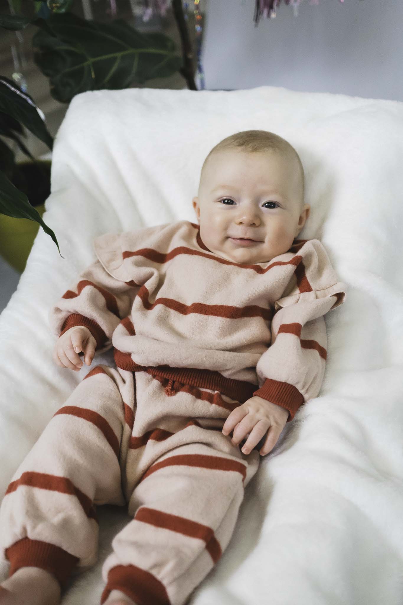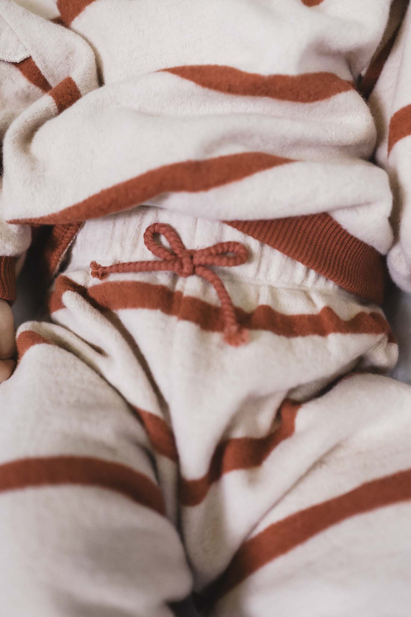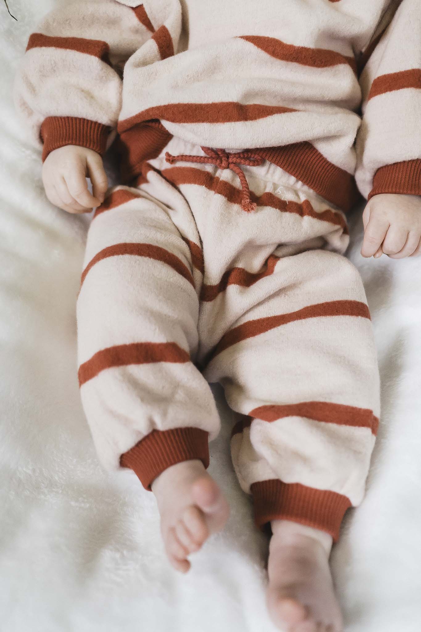 Baby girl is all cozied up in these pink-and-red striped sweatpants from Play Up! They feature a decorative bow at the waist, an elastic waistband, and ribbing at the ankles.