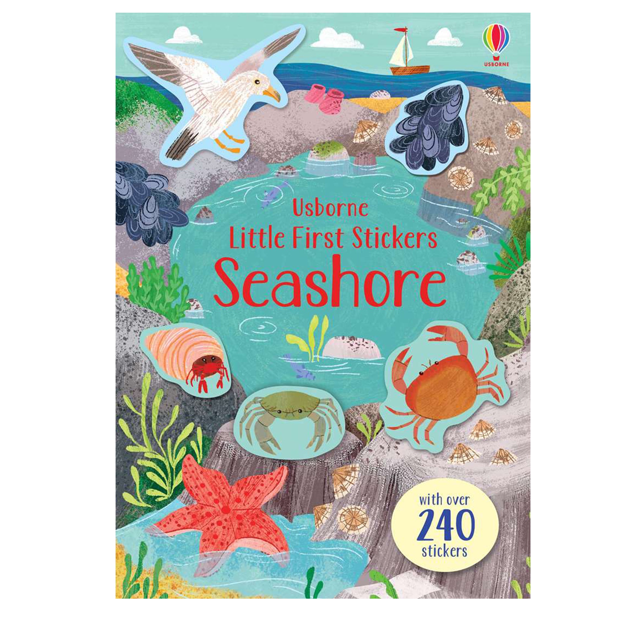 This beautifully illustrated book is packed with things you’d expect to find along a seashore; from familiar shells, crabs, and seaweed to more unusual creatures and plants. Children can use the stickers to bring each page to life. Themes include a sandy beach, crabs and starfish in rockpools, sea birds, seals, puffins, sea otters, and turtles.